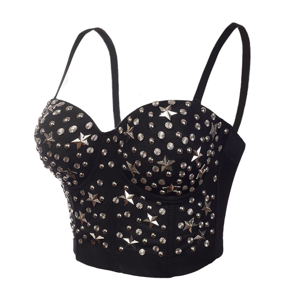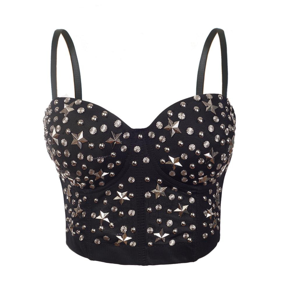 Polyester Spandex on Rivet Spaghetti Strap Cropped Tops