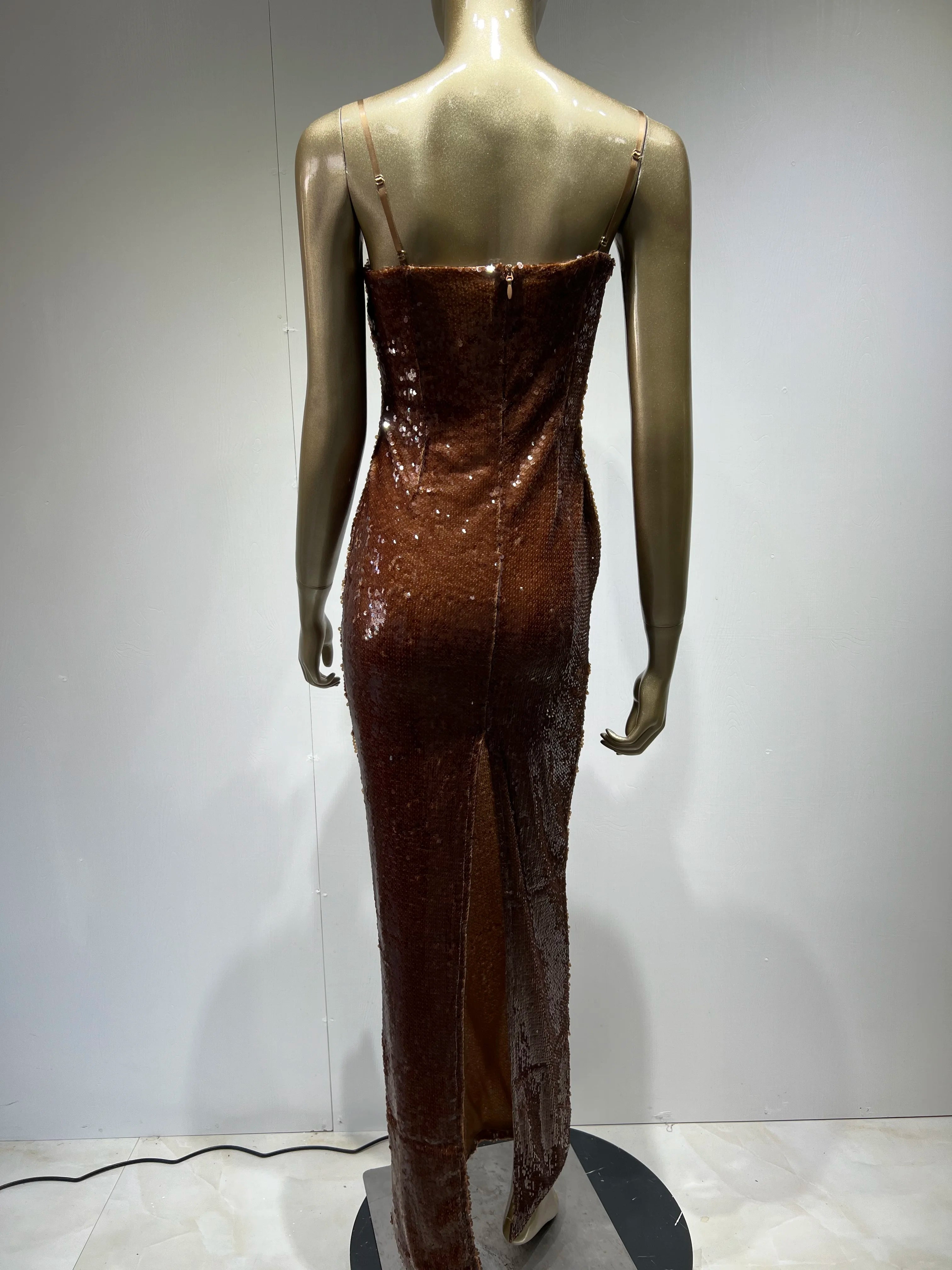 Unleash your inner goddess in our Celestial Dream Maxi Dress. Adorned with sparkling sequins, this dress will make you stand out at any party. The sexy & club style and ankle-length design will make you feel confident and glamorous. Make a statement and light up the night with this breathtaking dress!