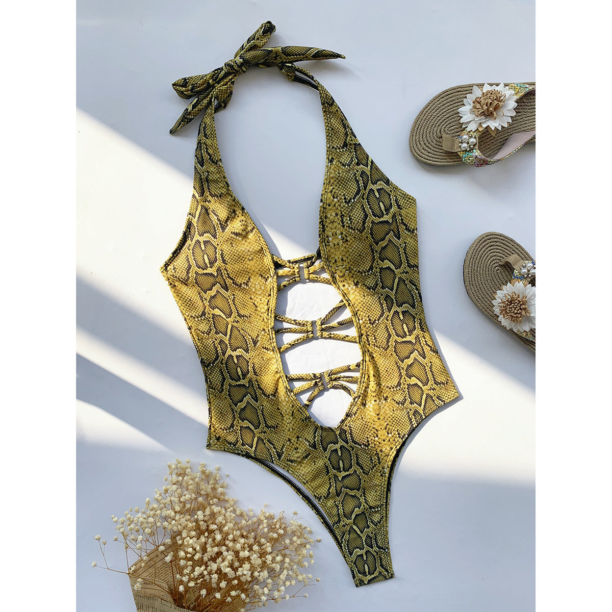 The monokini gives you a glamorous look by flaunting your figure in a bikini. This popular swimsuit style has been enjoying a resurgence as it continues to be a timeless fashion accessory. The sleek design is flattering to a woman's figure and creates a bare midriff that flatters your curves. The halter neckline is a flattering design that is sure to catch the eye. It's a stylish swimsuit that's perfect for the beach or pool, for any occasion, and for all-day wear.