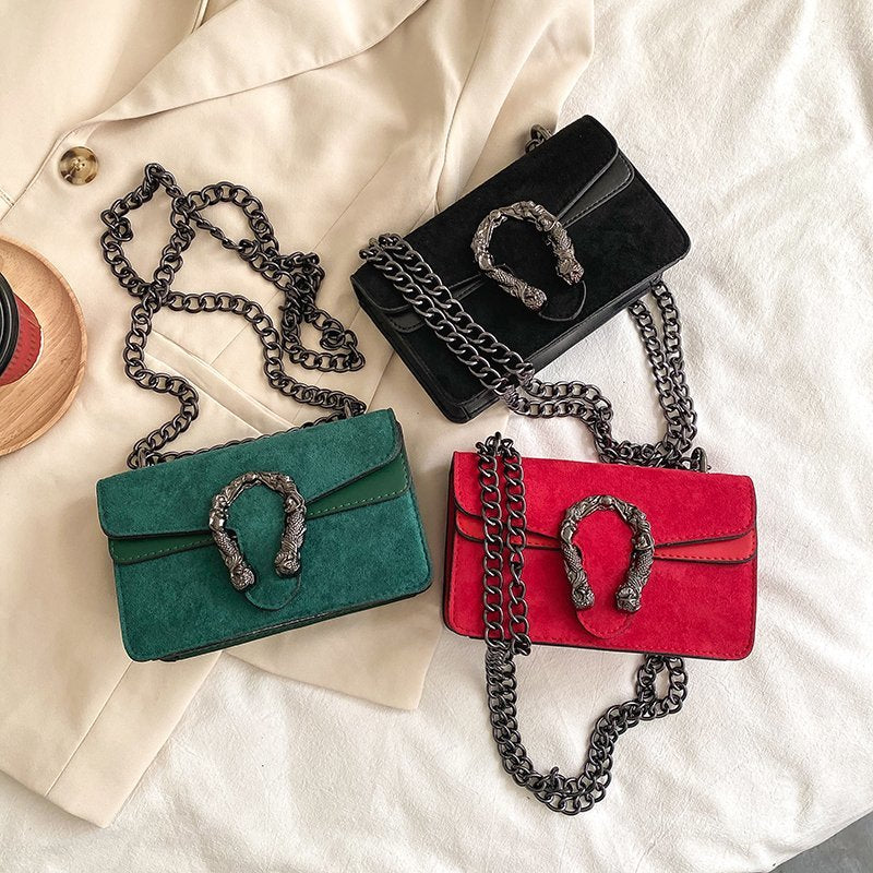 Solid Faux Suede Shoulder Bag with Classic Metal Decoration