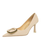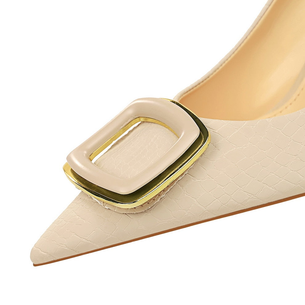Solid PU Pointed Toe Pumps with Buckle Decoration and Snake Skin Pattern