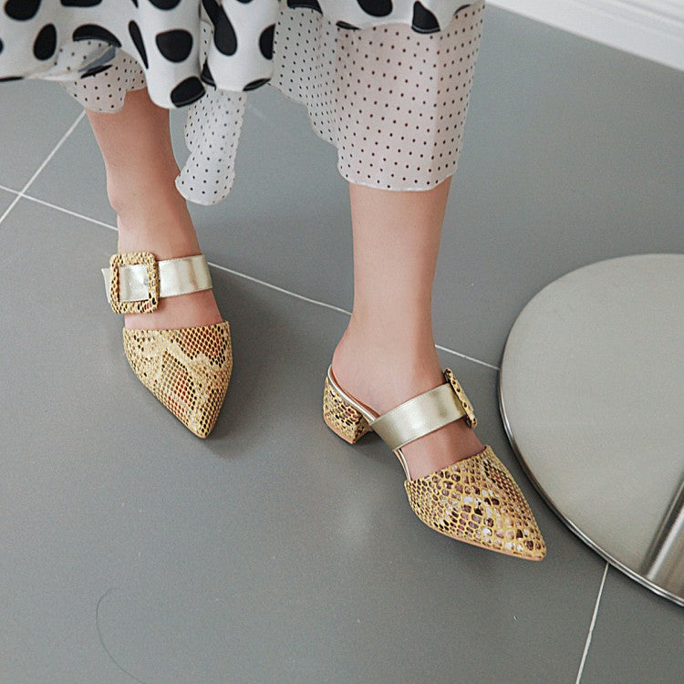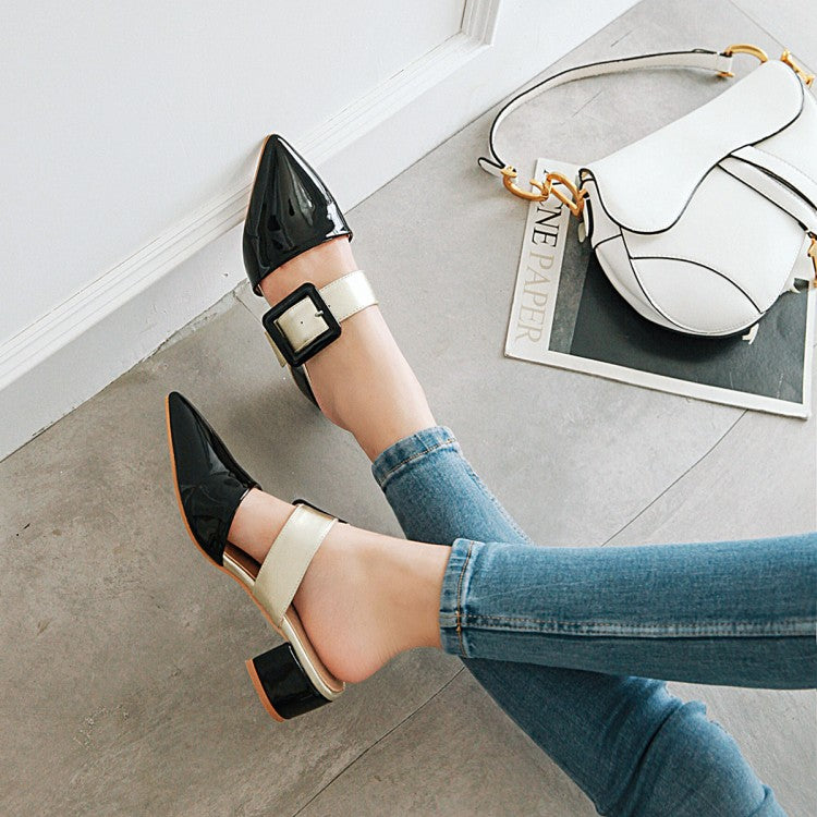 Square Heel Buckle Decorated Mules Sandal with Patent Leather and Polyurethane Material