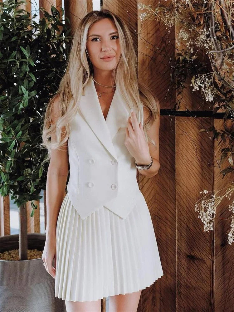 Experience effortless style and comfort all night long with our skirt set. Made with a solid blend of spandex and polyester, this set features a convenient button closure and a stylish fold design. Perfect for a night out or a casual day.