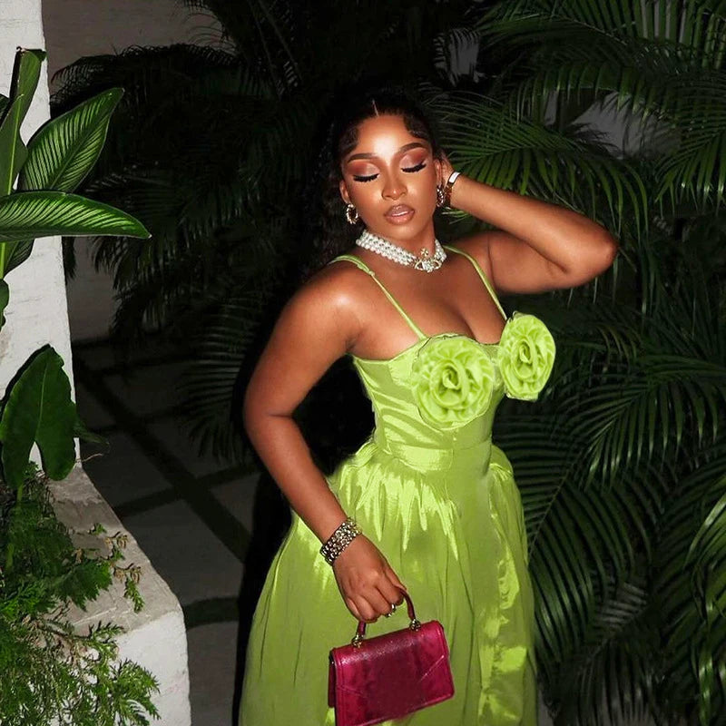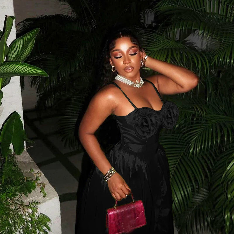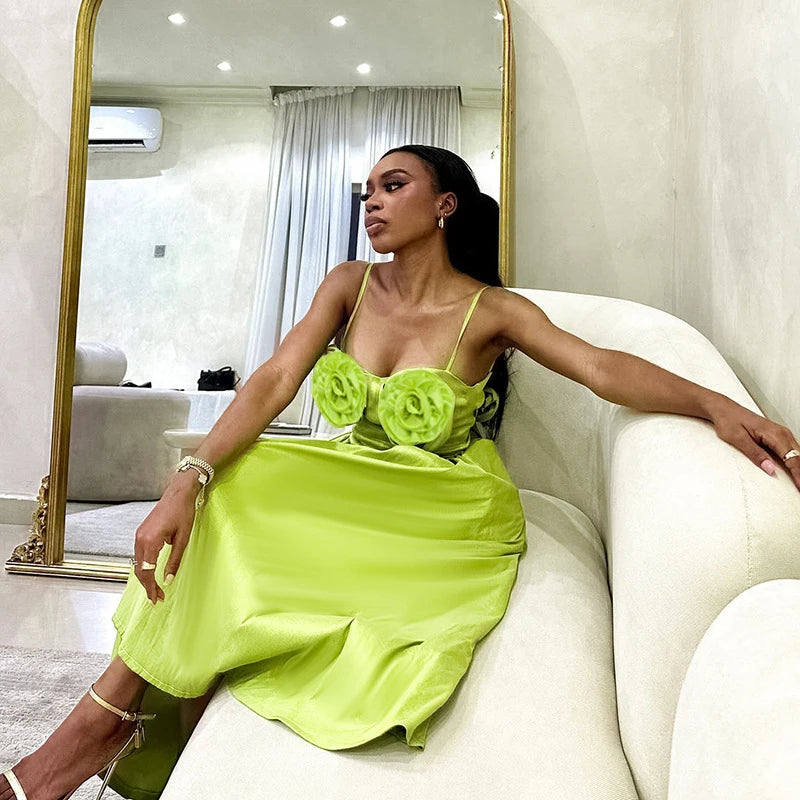 This Give Me Something Midi Dress will make you feel confident and stylish! The slim fit and mid-calf length create a flattering silhouette, while the spaghetti straps and appliques add a touch of elegance. Made with soft polyester fabric, this dress is perfect for any occasion.
