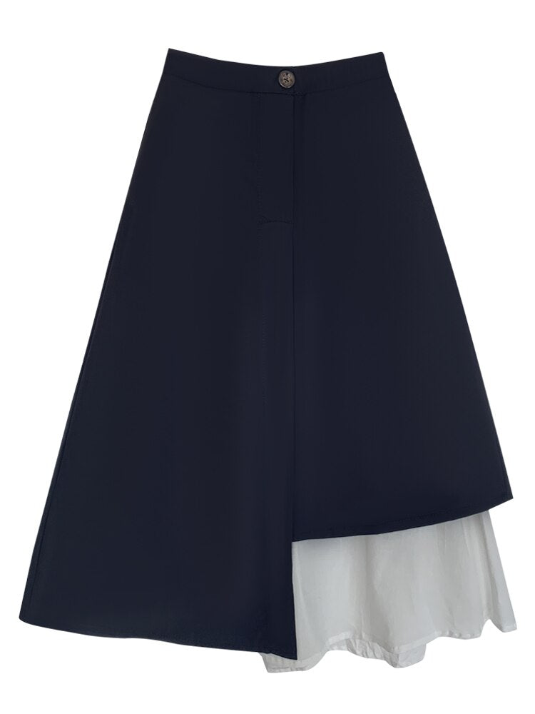 Polyester on Patchwork Pleated Ankle Lenght Skirt