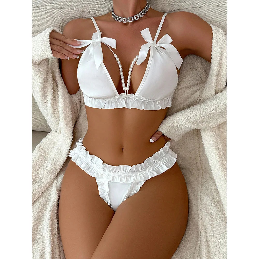 Wrap yourself in luxury with our Heavenly Veil Lingerie Set. Made with a blend of polyester and spandex, it offers a comfortable fit while also providing support and lift with its wire-free and push-up design. The solid pattern and back closure add an extra touch of elegance to this must-have lingerie set.