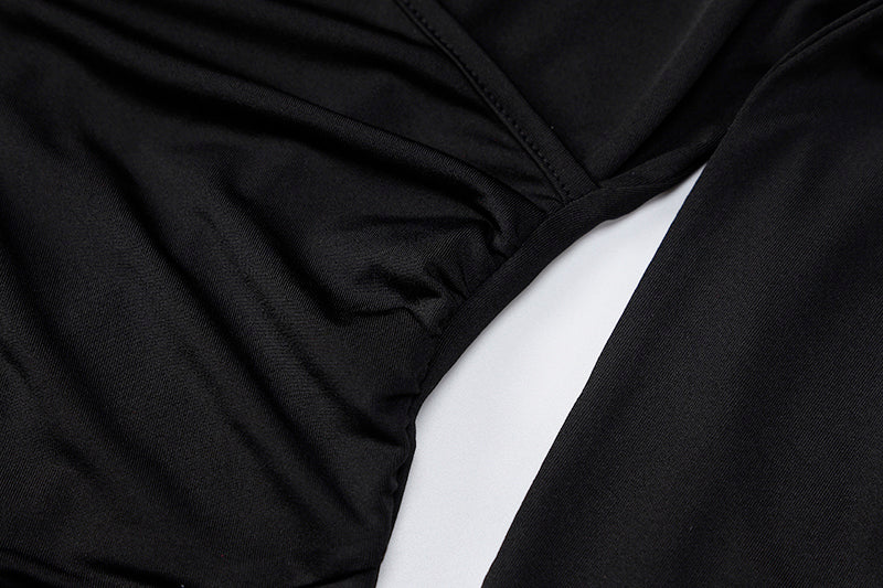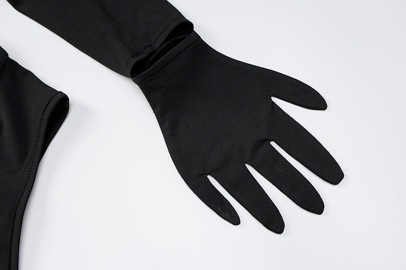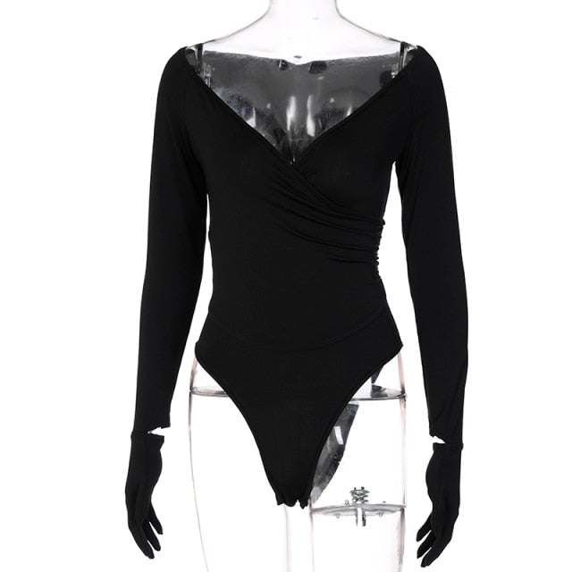 This bodysuit is very comfortable and stylish. It is made of high-quality polyester spandex material. It has long sleeves and v-neck style with a semi off-shoulder look. The solid black pattern makes it a versatile piece for any occasion.
