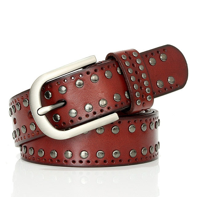 Genuine Leather Cowskin Belt with Metal Buckle and Punk Rivet Style Studded Decoration