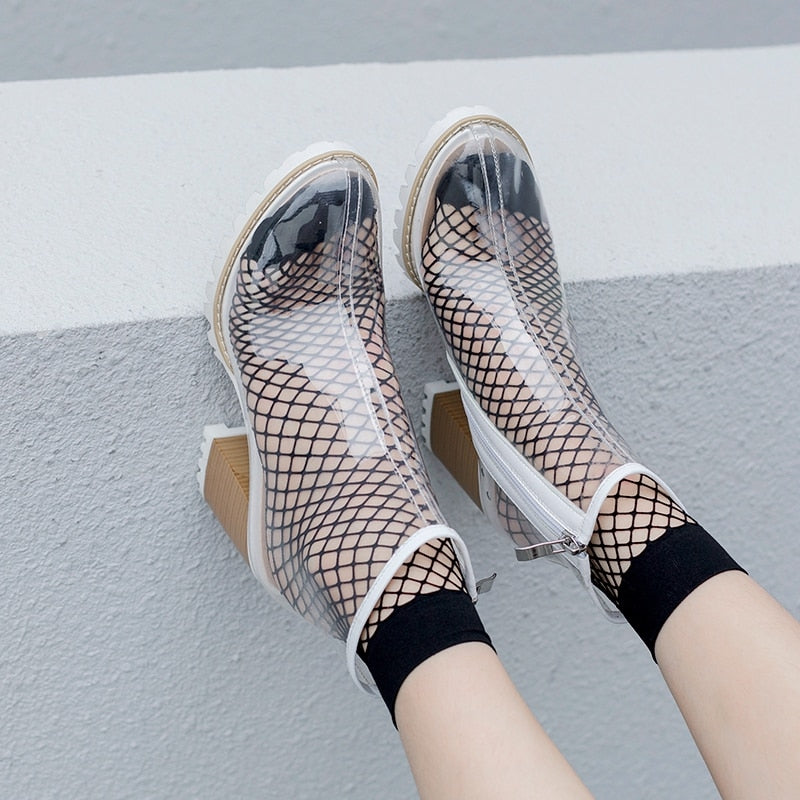 Kim Kardashian Style Sexy PVC Transparent Women Ankle Boots