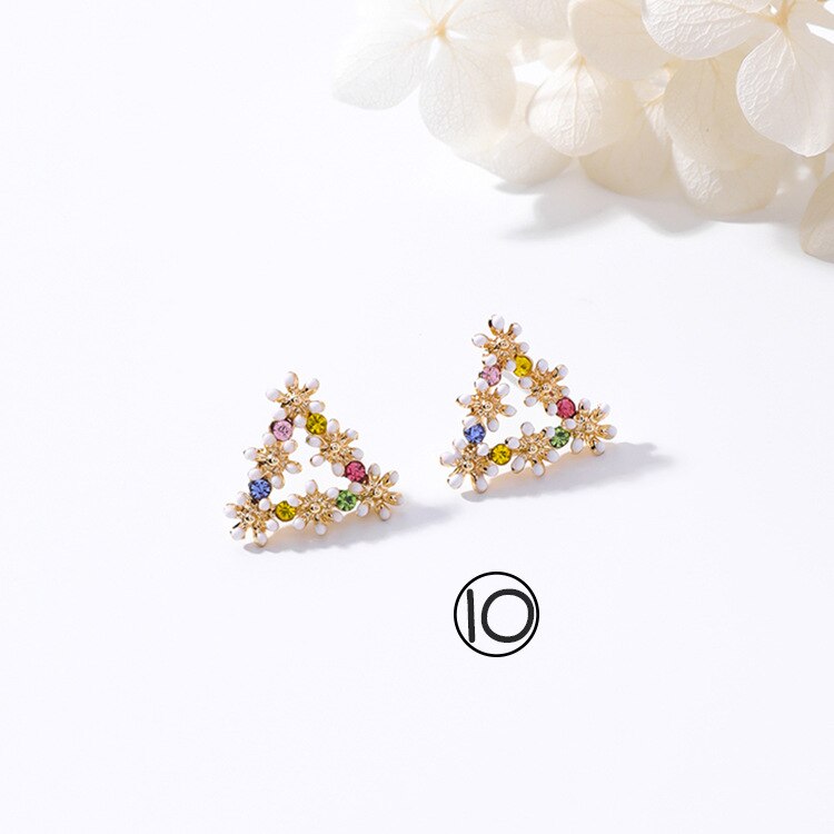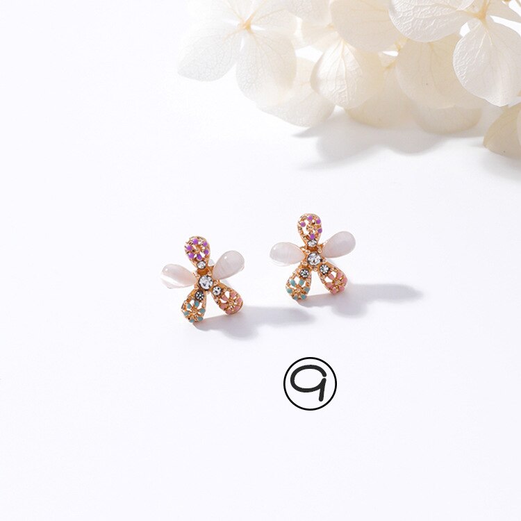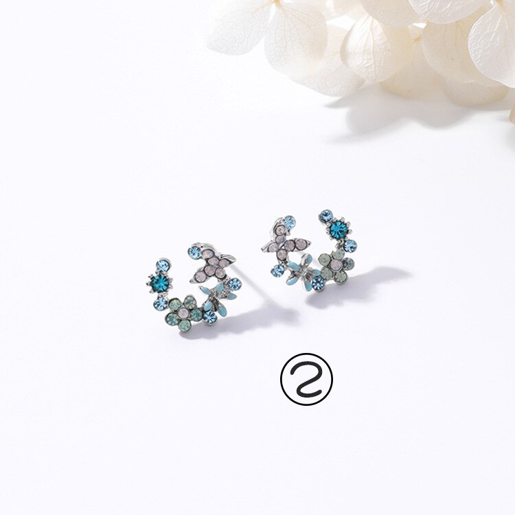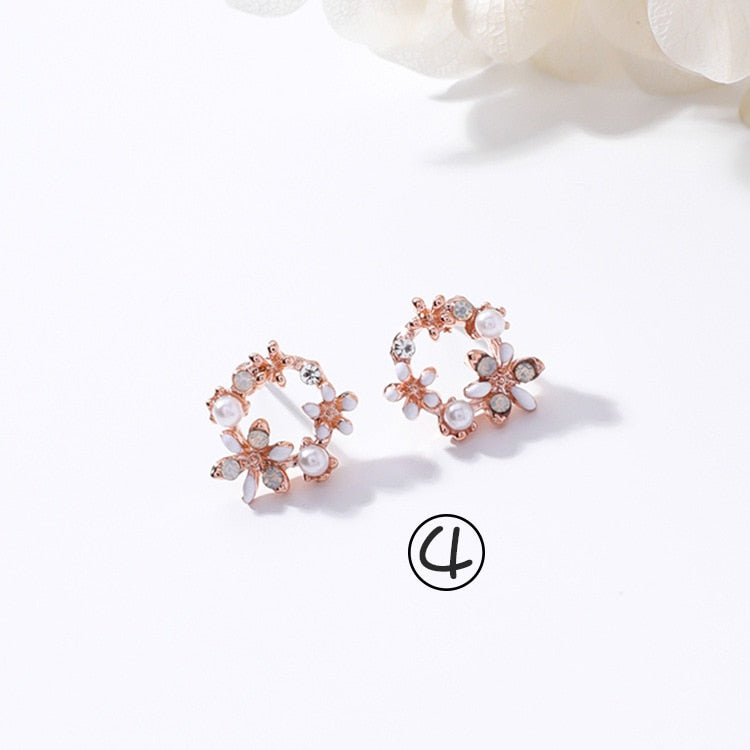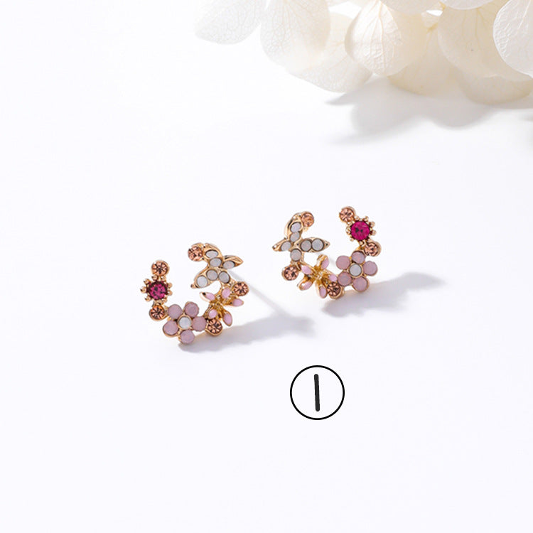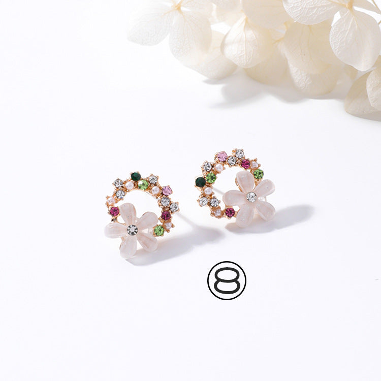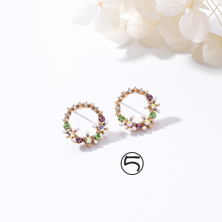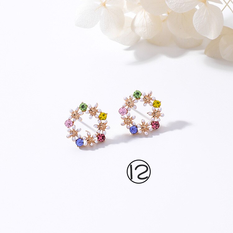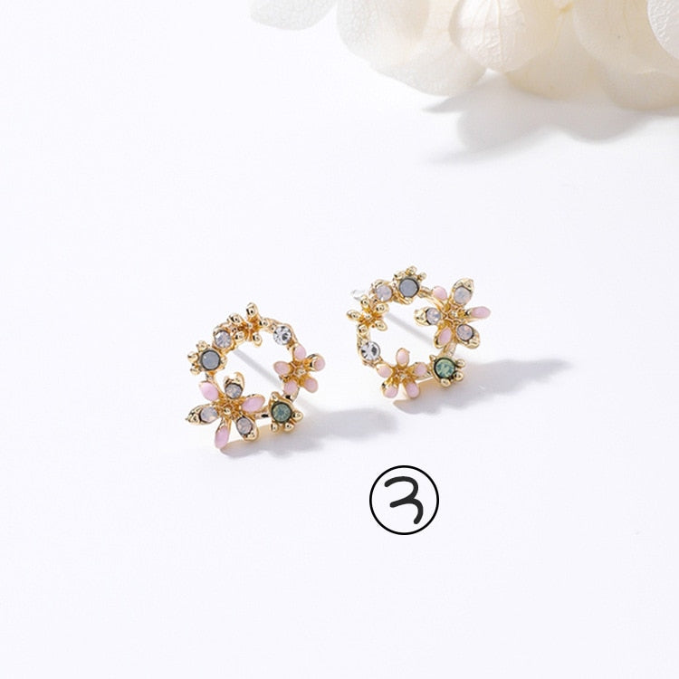 Korean Cute Hook Drop Oil Flower Crystal Stud Earrings