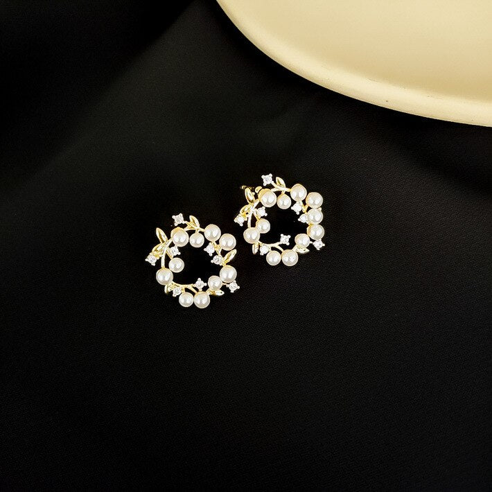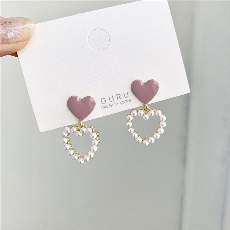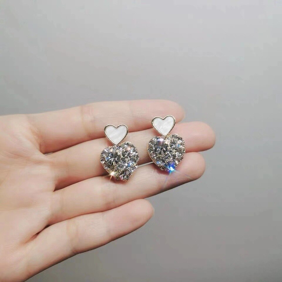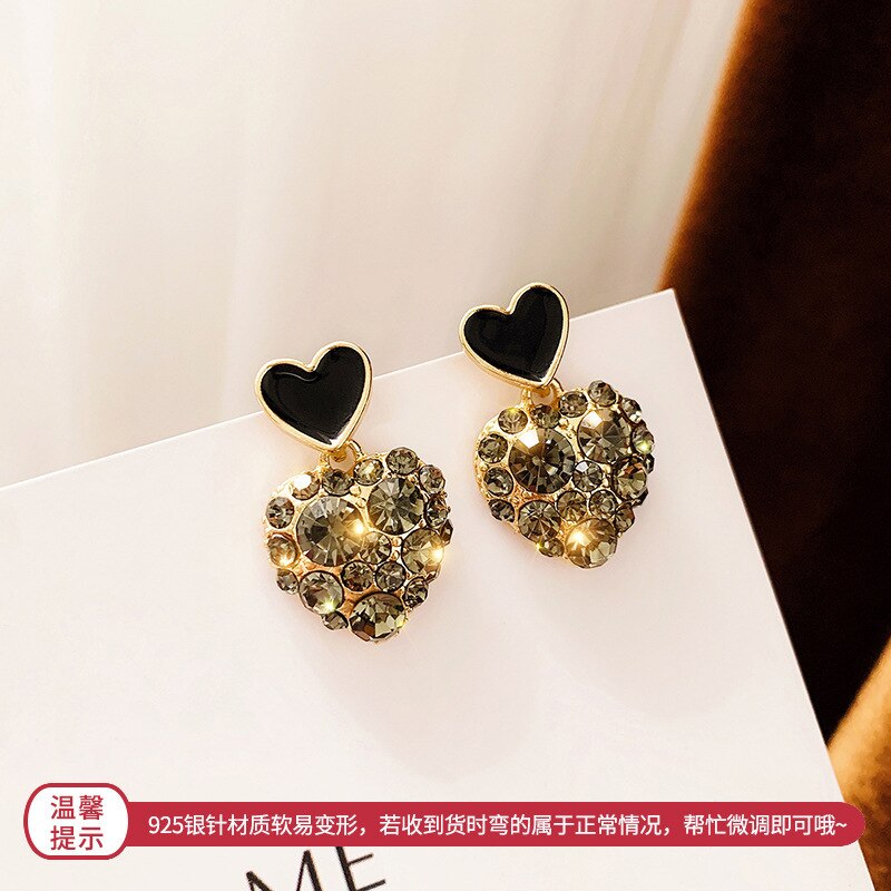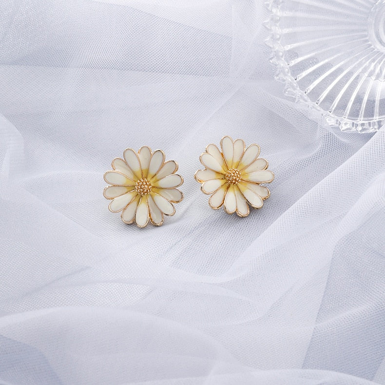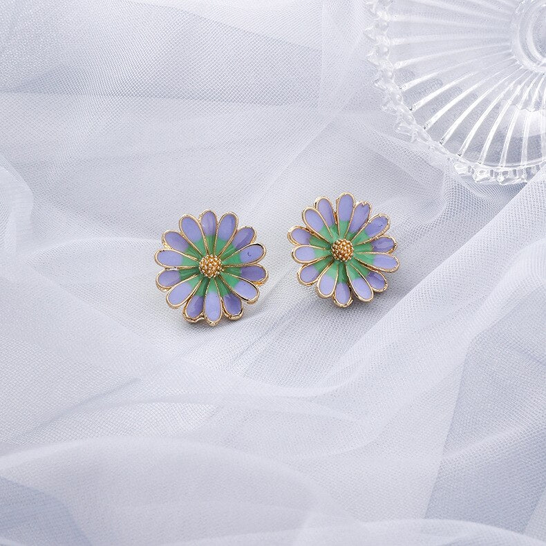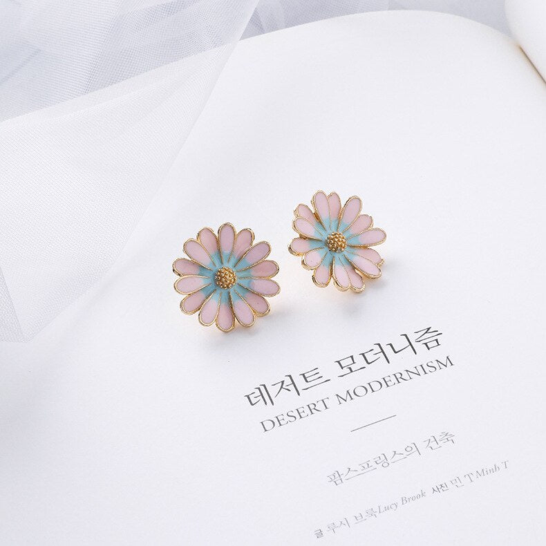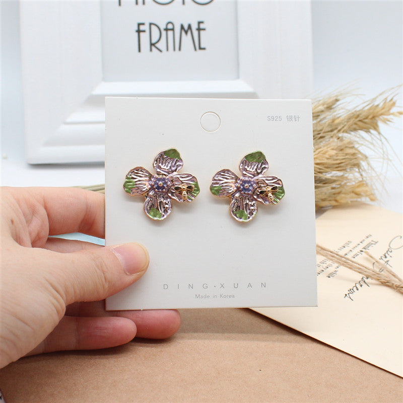 Korean Cute Hook Drop Oil Flower Crystal Stud Earrings