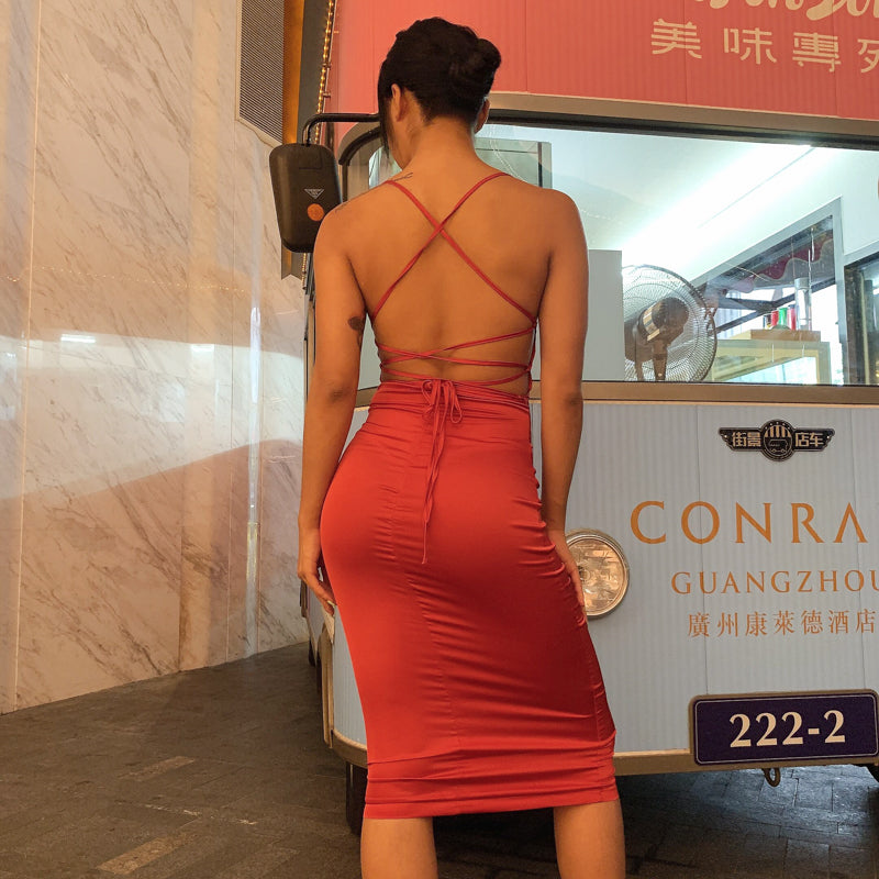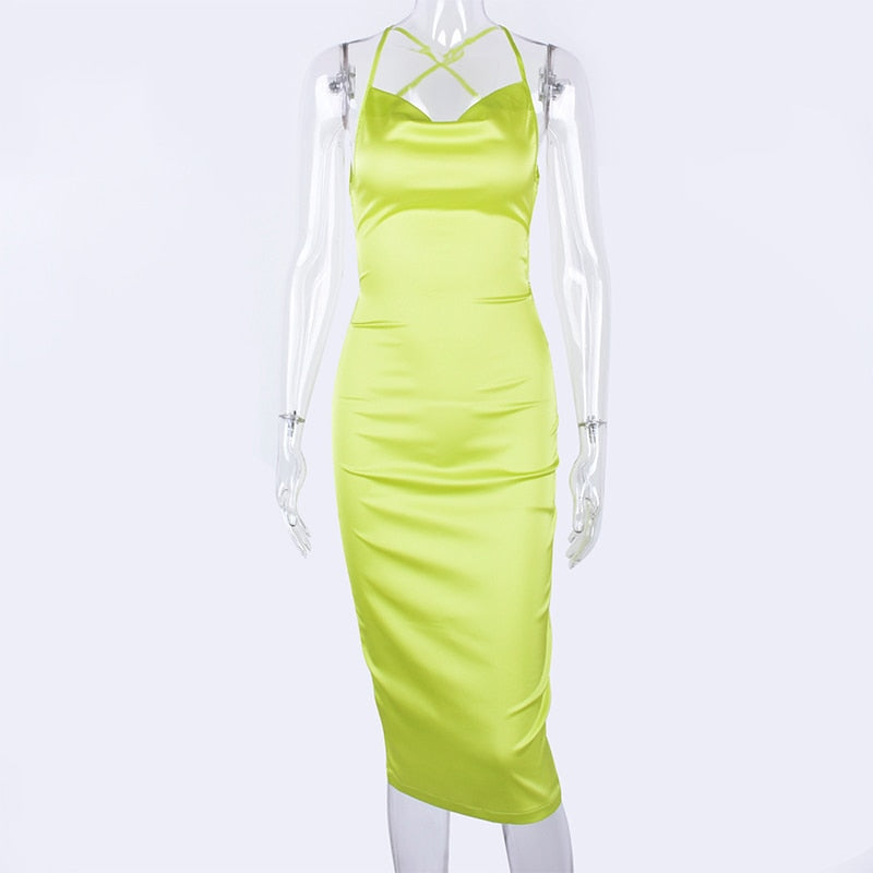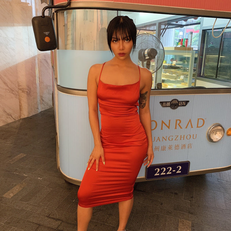 A midi dress is a classic style that will never go out of style. This one is made of satin and has spaghetti straps that make it versatile for the different seasons. It's a solid color and comes in many different colors to match any style.