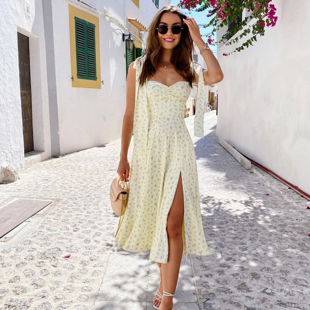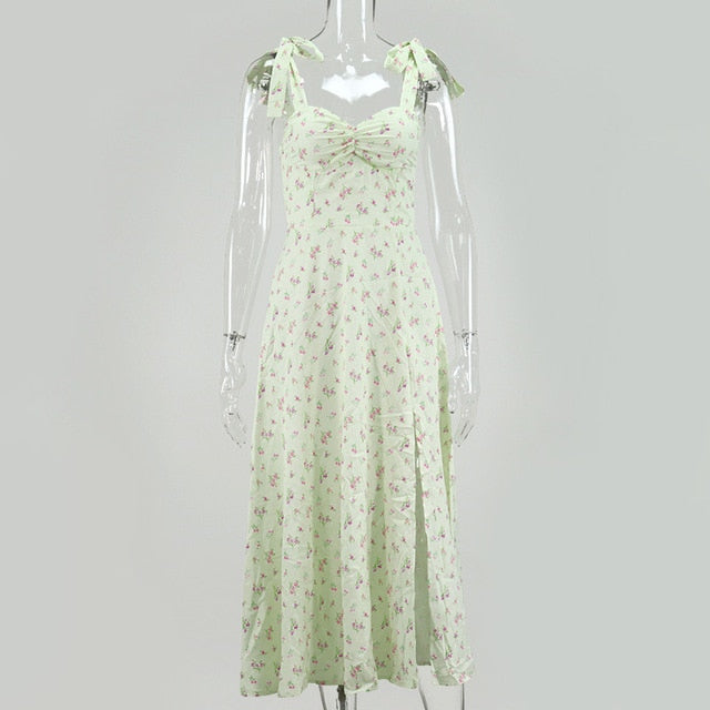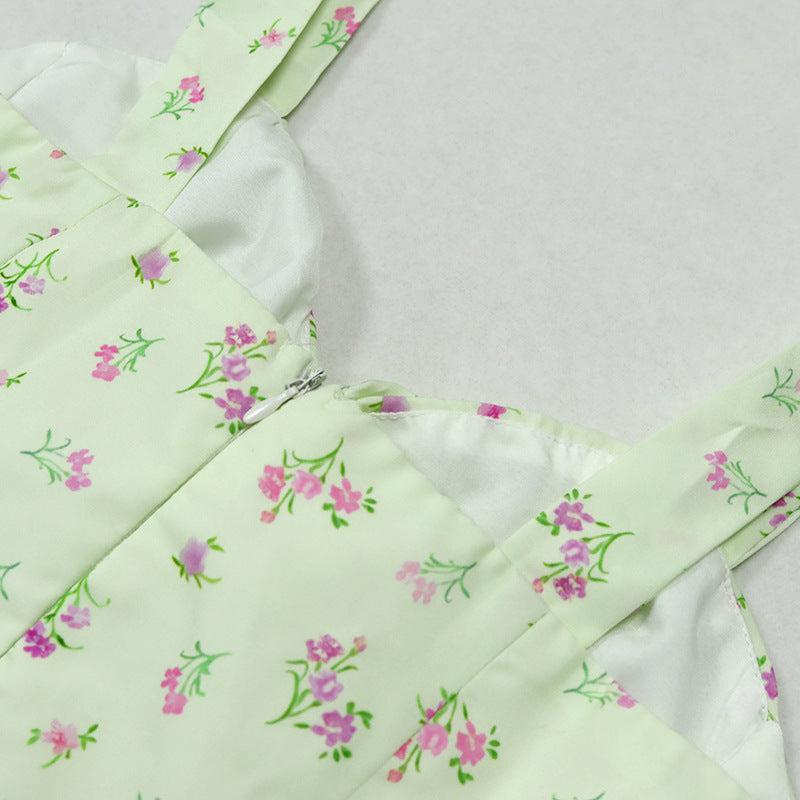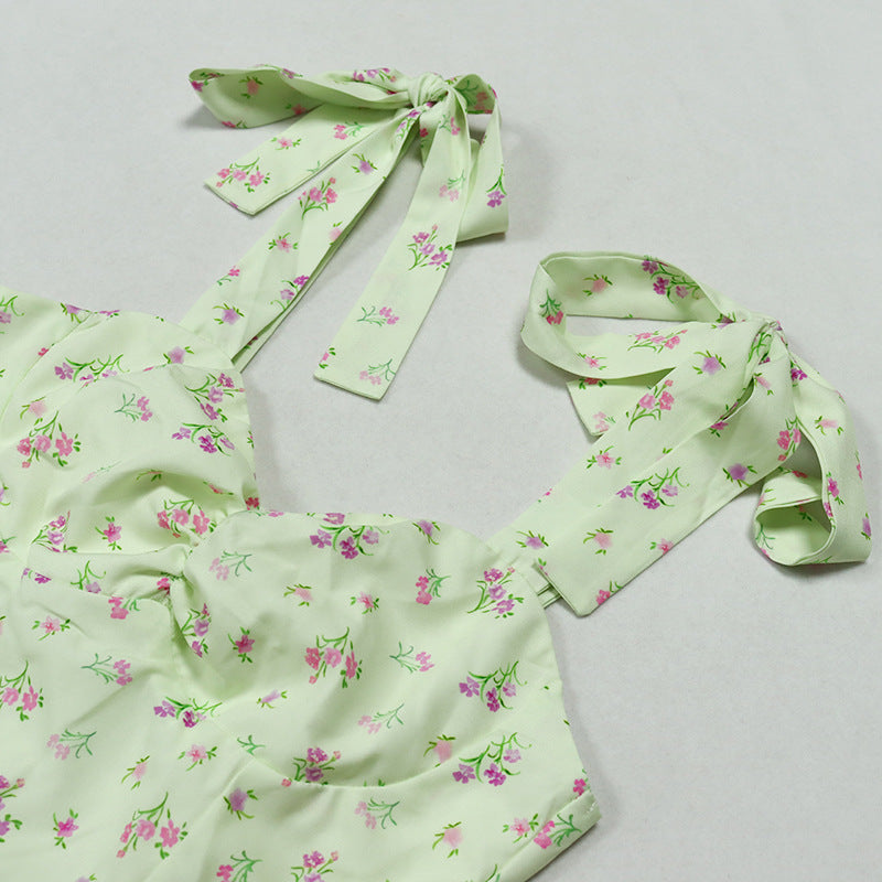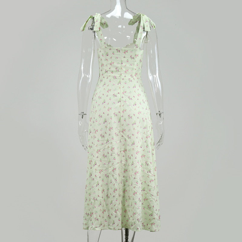 Floral Pattern Midi Dress with Straps and A-Line Silhouette
