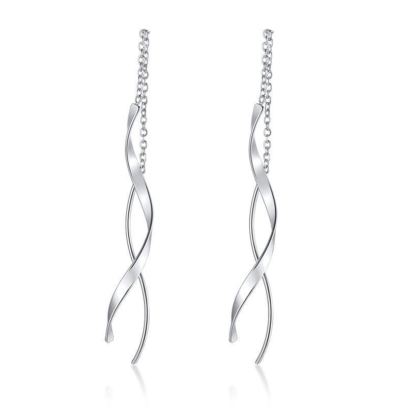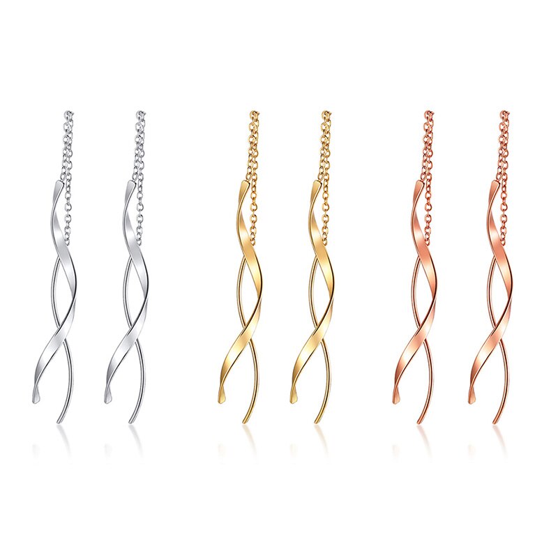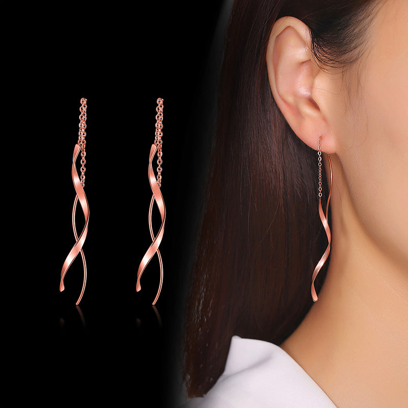 Luxury Rose Gold Threader Thin Bar Spiral Wire Woman Earrings