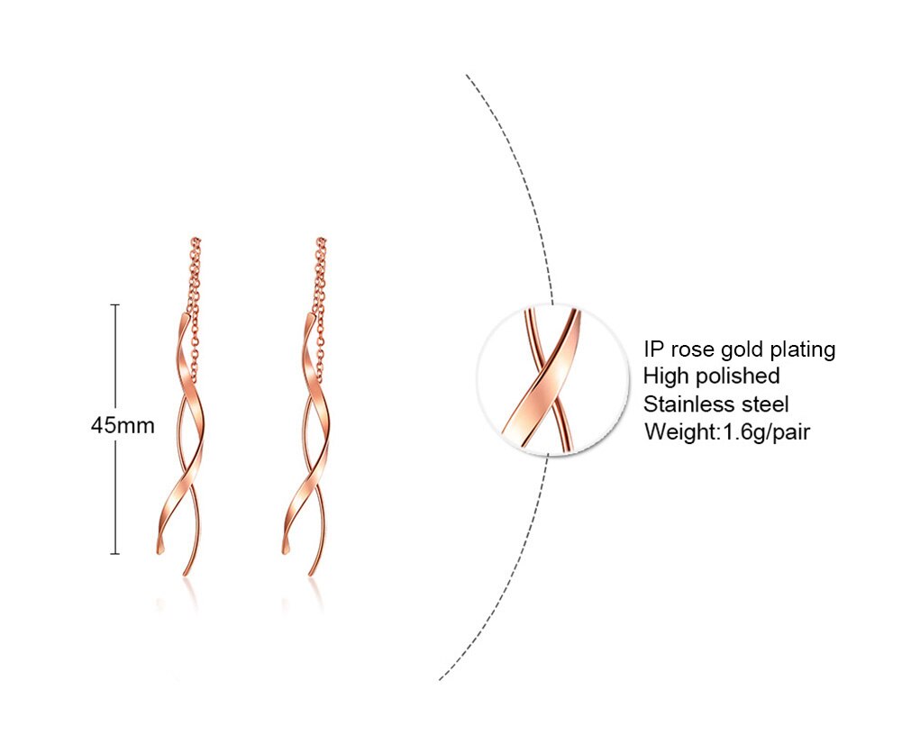 Materials: Made with high-quality stainless steel and copper, these trendy earrings are designed to make a statement. The rose gold threader thin bar spiral wire adds a touch of elegance to any outfit.