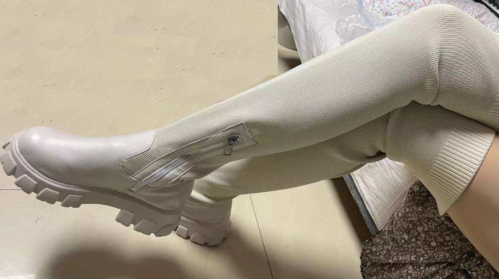Warm up the winter season with these stylish over-the-knee boots. Designed with a socks style these boots are perfect for cold weather days. The zipper closure makes for easy on and off,