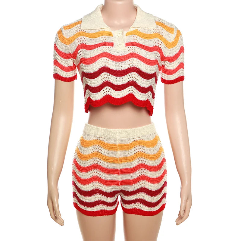 Experience comfort and style with our Ocean of Dreams Shorts Set! Made with a luxurious blend of cotton and polyester, this set offers a medium stretch for the perfect fit. The trendy striped pattern adds a touch of sophistication to your loungewear collection. Get yours now!