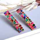 Long Rectangle Rhinestone Stud Earrings With Zinc Alloy Material