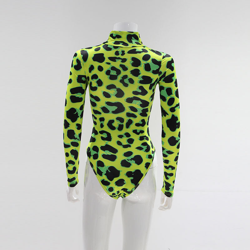 A comfortable and stylish bodysuit that can be worn with just about anything. This long sleeve top features a turtleneck neckline that covers the neck and shoulders for warmth. An eye-catching style that is guaranteed to turn heads. Featuring a leopard pattern, it's a fun piece that will make a fashion statement. The soft and stretchy fabric hugs the body, so she can be comfortable while looking great.