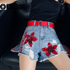 Red Floral Denim Short
