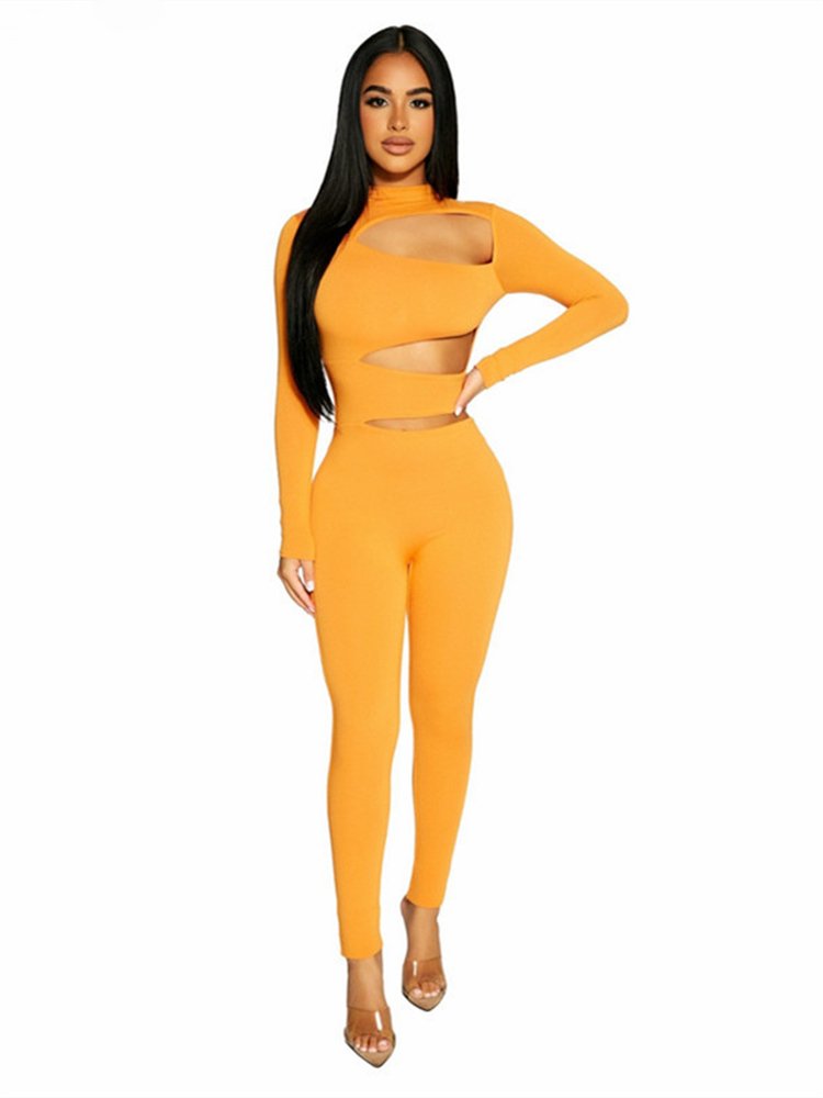 Made from a light, breathable fabric, this jumpsuit is the perfect pick for summertime. The jumpsuit features a flattering turtleneck and a bodycon silhouette. The jumpsuit also features a stylish side hollow-out design that is sure to turn heads.