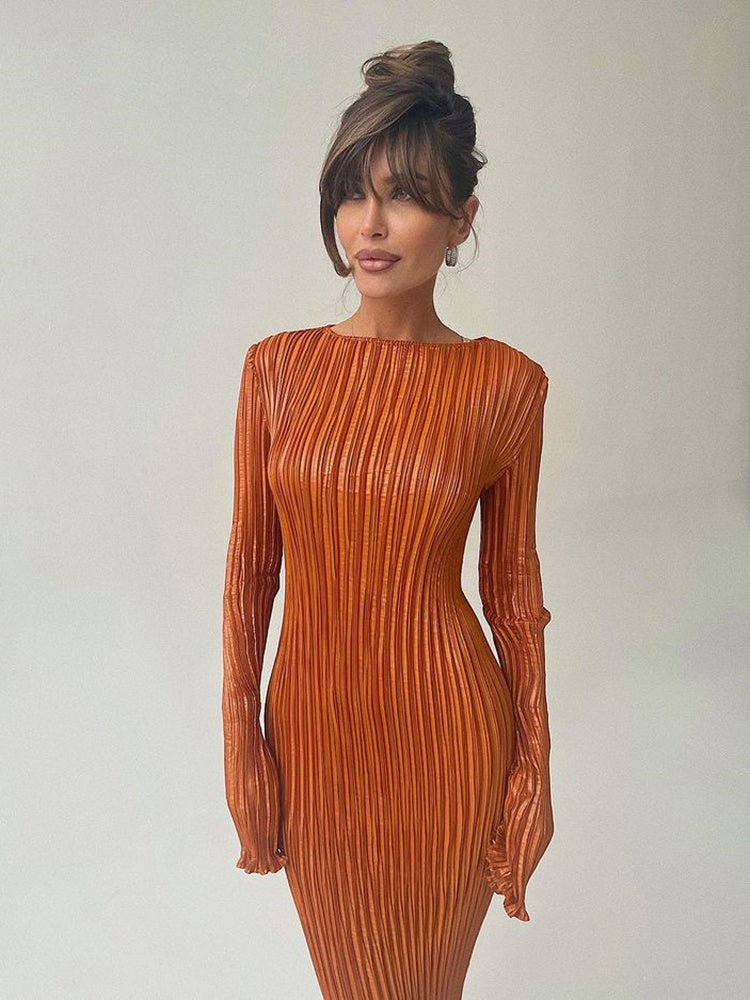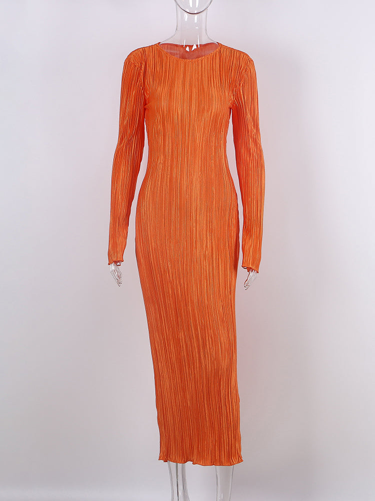 This dress is made of polyester, o-neck, long sleeve, pullover. The dress is perfect for a night out or a nice dinner with friends. It's classy and elegant. The dress is designed to flatter all shapes and sizes. It has a very simple and clean design, so it's easy to pair with a number of different accessories.