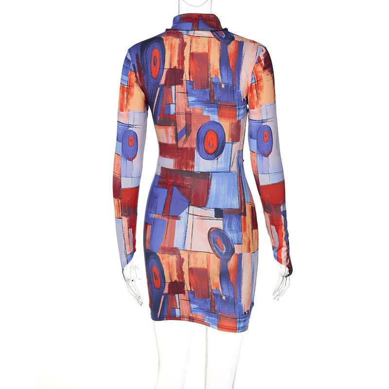 Feel confident and stylish in our mini dress. Made from polyester and spandex material, this mini dress features a unique geometric design, perfect for any occasion. Stay comfortable and turn heads with our stylish mini dress.