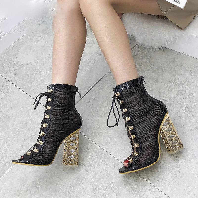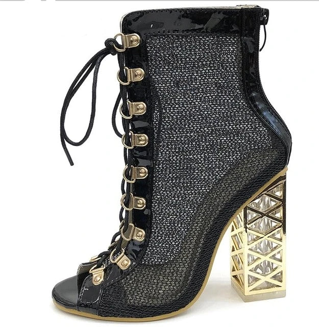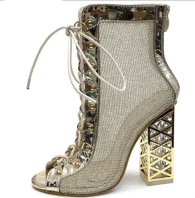 Sexy Gladiator Golden Lace Up Heels Women Bondage Boots