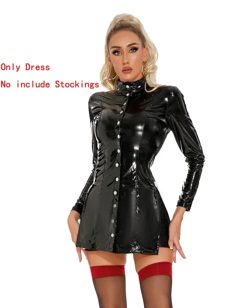 Unleash your inner fashionista with this mini dress! This stunning mini dress features a solid design with polyester, synthetic leather, and nylon materials. Perfect for any occasion, this dress is sure to turn heads and make you feel confident and fabulous.