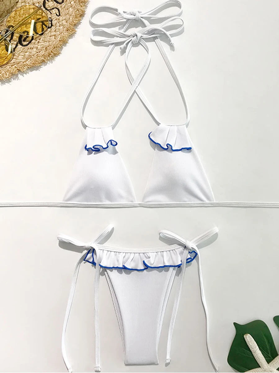 Embrace your inner angel in our two piece swimsuit. Made with spandex and polyester, this beach style suit features a wire free support and a low waist design. Feel confident and comfortable while looking effortlessly stylish.