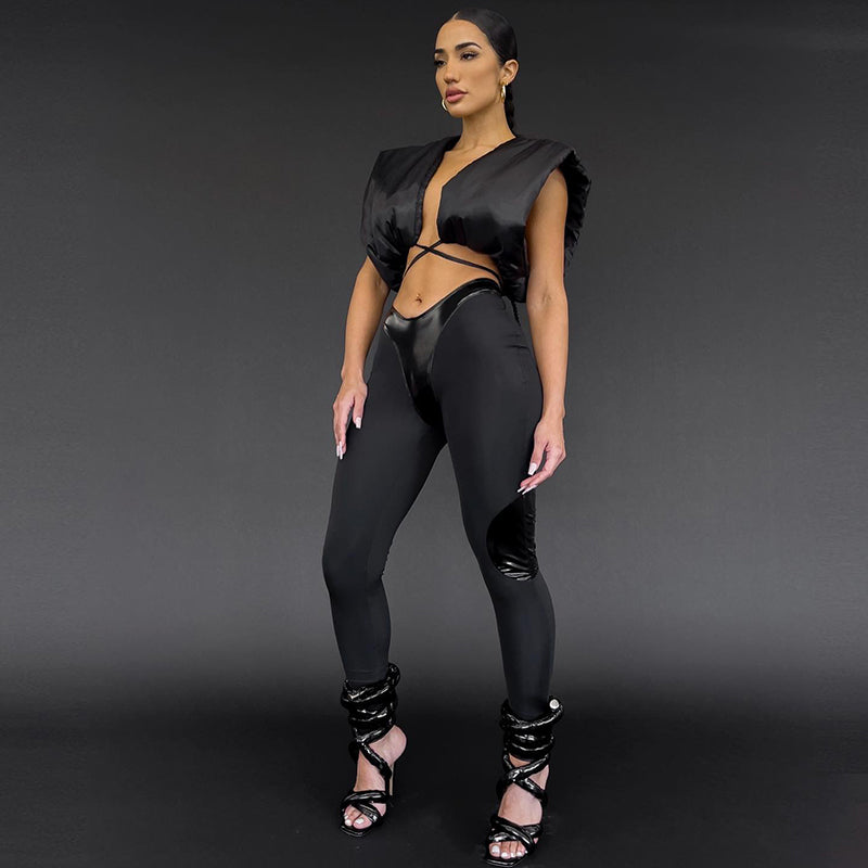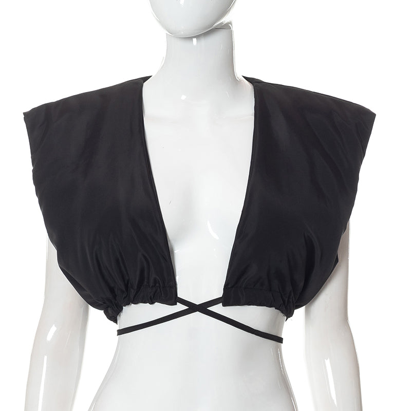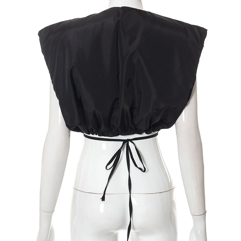 This comfy crop top is perfect for a workout, or just lounging around the house. It features a sleek, black color, and is made of breathable polyester material. It has a sleeveless design and a crop top style. It's a great way to stay cool in the summer heat.