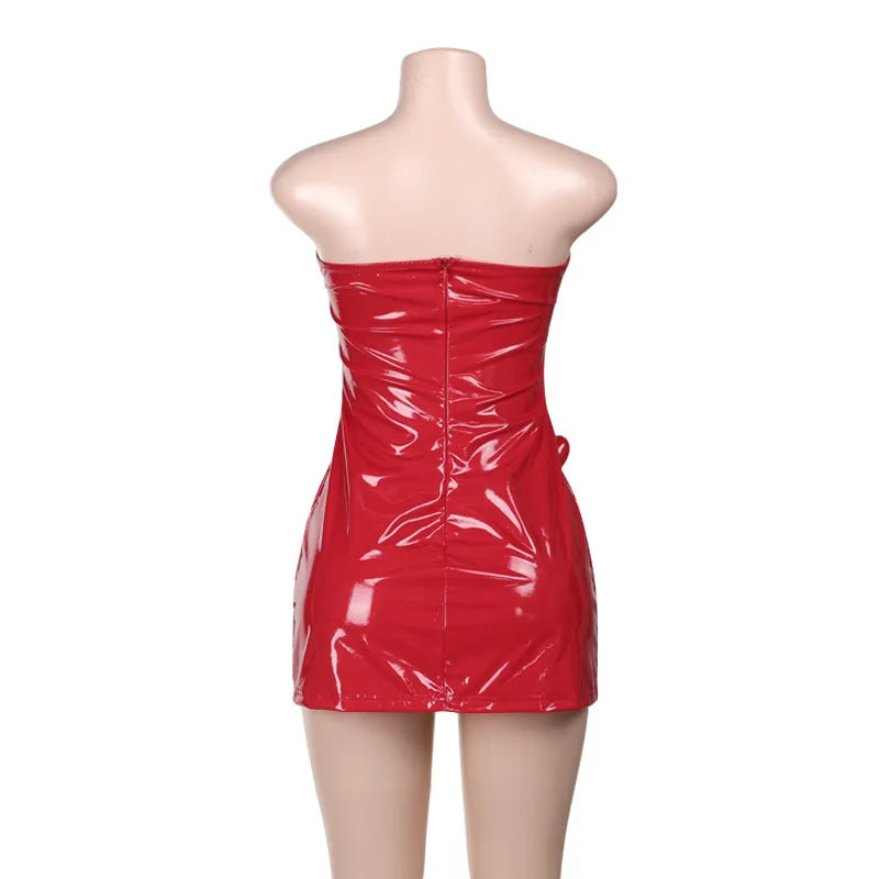 Experience the ultimate fusion of style and comfort with this mini dress. Crafted from synthetic leather, this solid mini dress features a sleek zipper for an edgy and modern look. Let go of the past and embrace the future in this must-have piece!