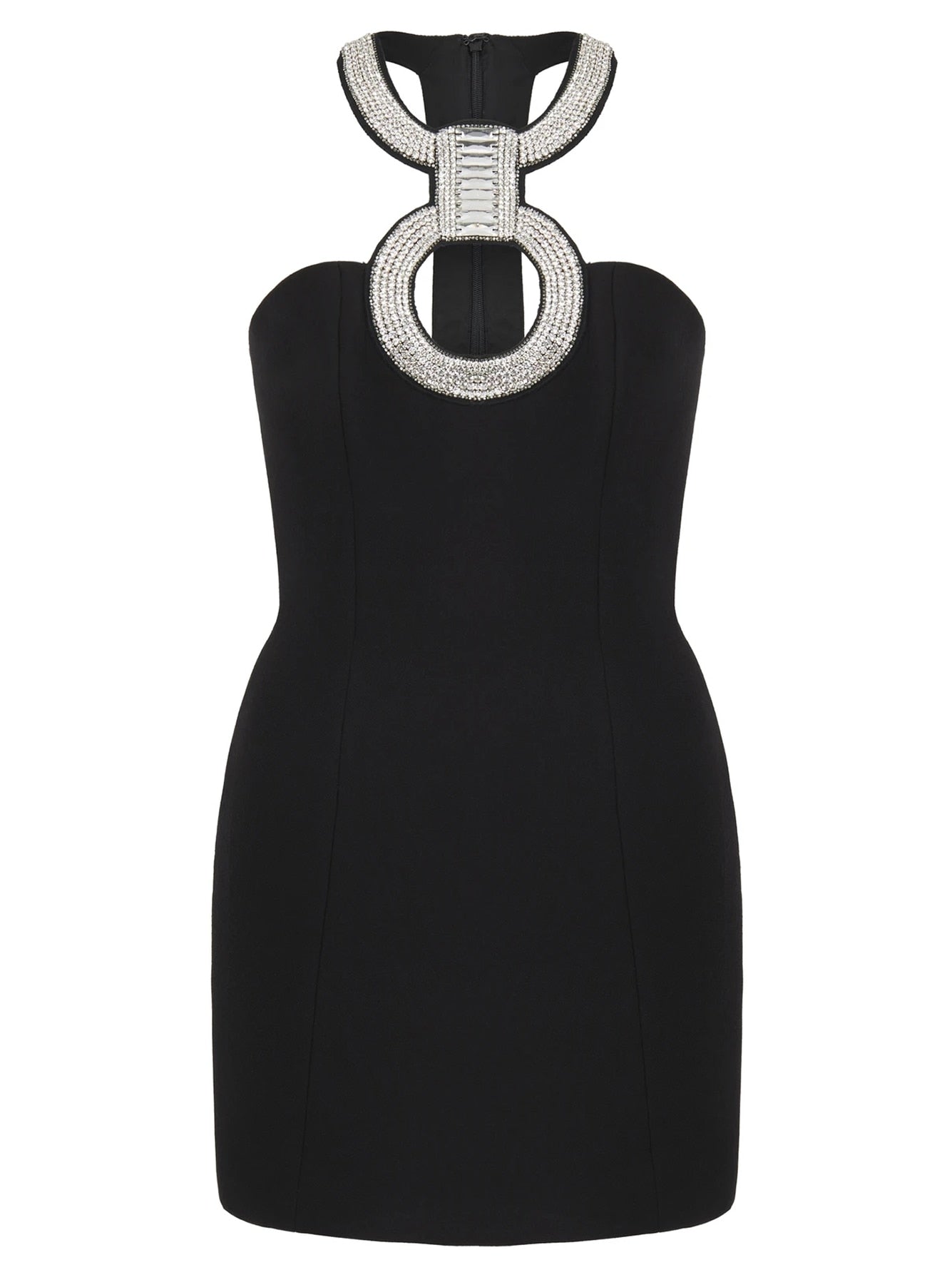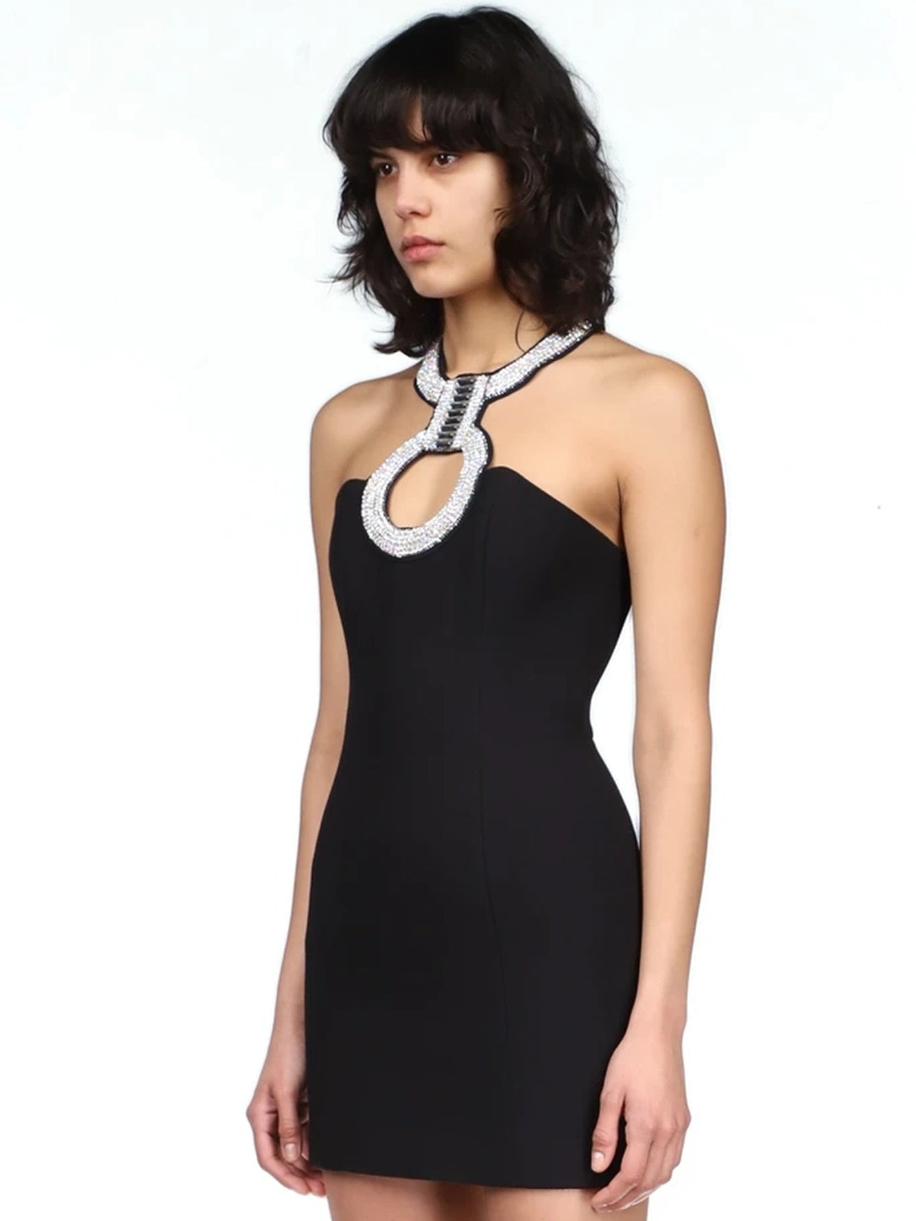 This feminine and stylish dress is a stylish representation of the latest fashion trends. It features a sexy halter neck and rhinestone decoration that is sure to turn heads and make an impression. Pair with a great pair of heels, stylish jewelry, and accessories, and this dress is sure to be your new favorite.