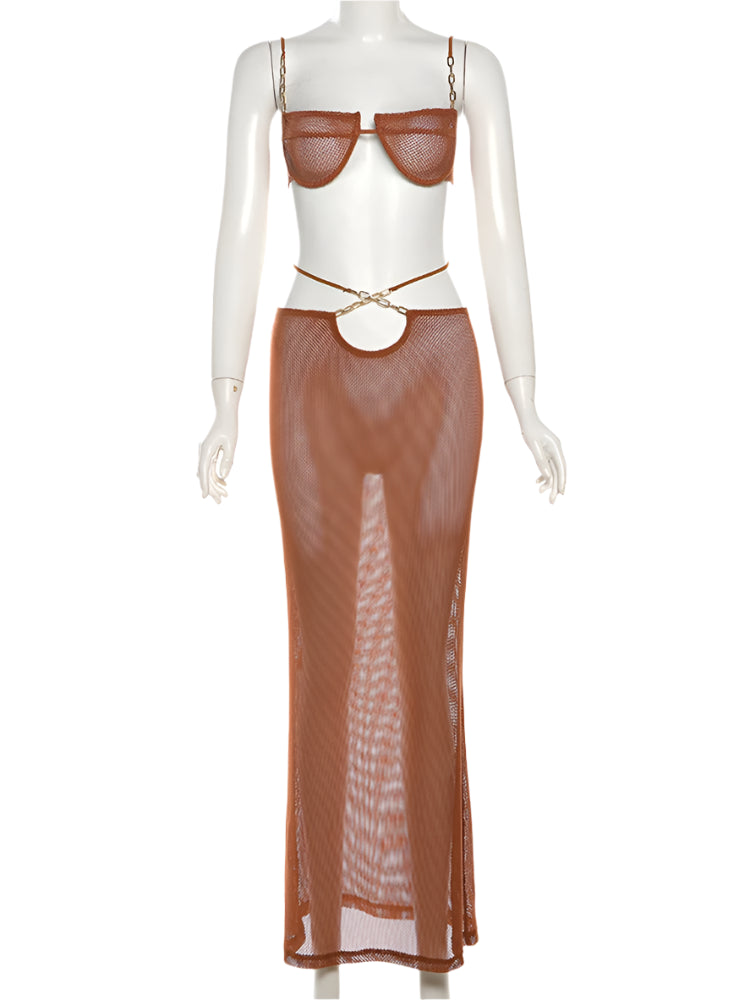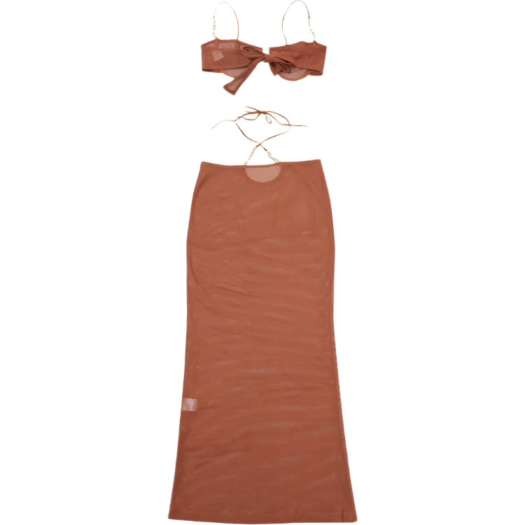 Unleash your inner confidence with our Told You Tease Skirt Set. The square collar adds a touch of sophistication, while the chain detailing adds a hint of edge. Made with comfortable and durable polyester, this set is perfect for making a bold statement wherever you go.