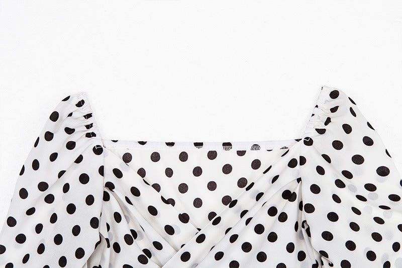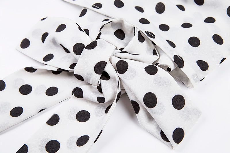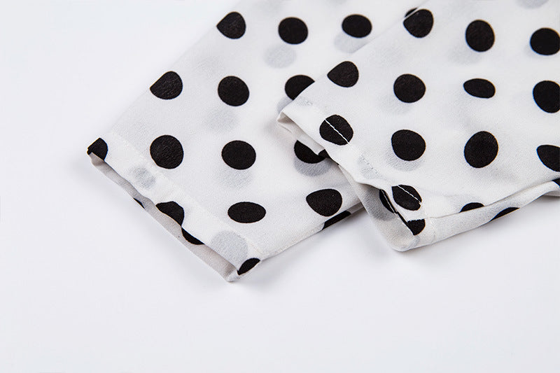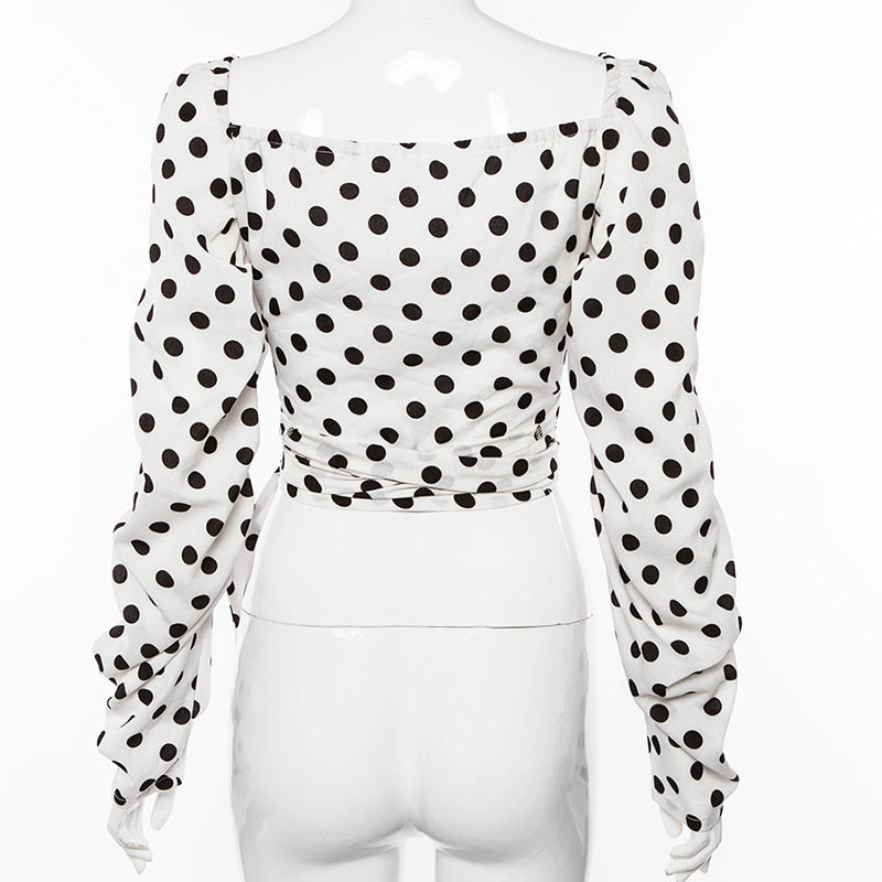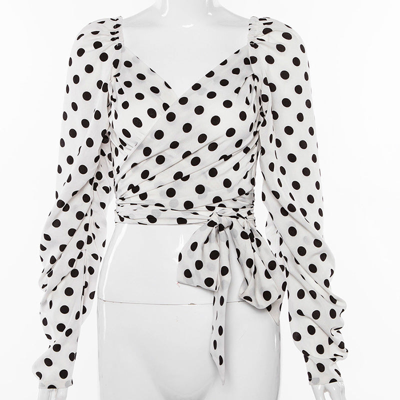 Vintage Polka Dot V-Neck Long Sleeve Women Blouses