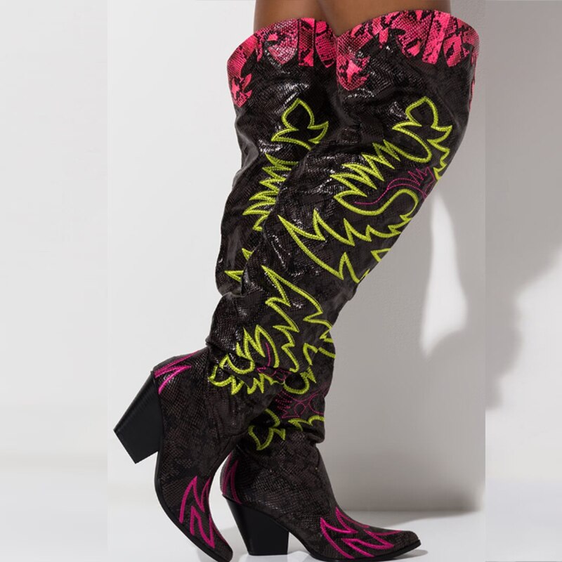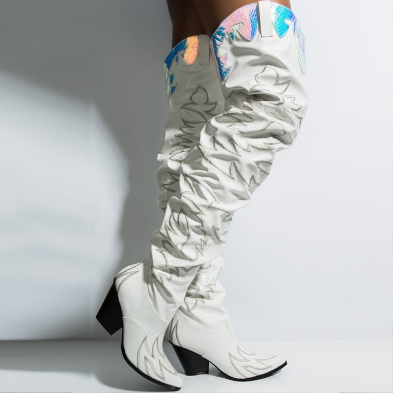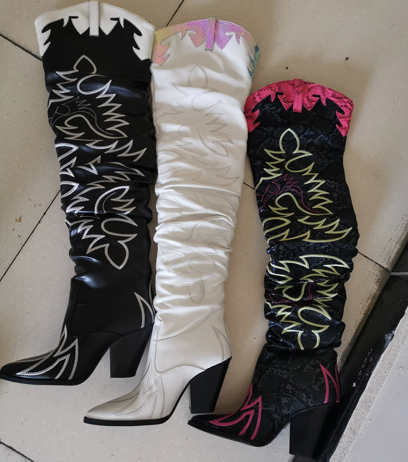 Western Cow Girl Embroider Pointed Toe Over The Knee Boots