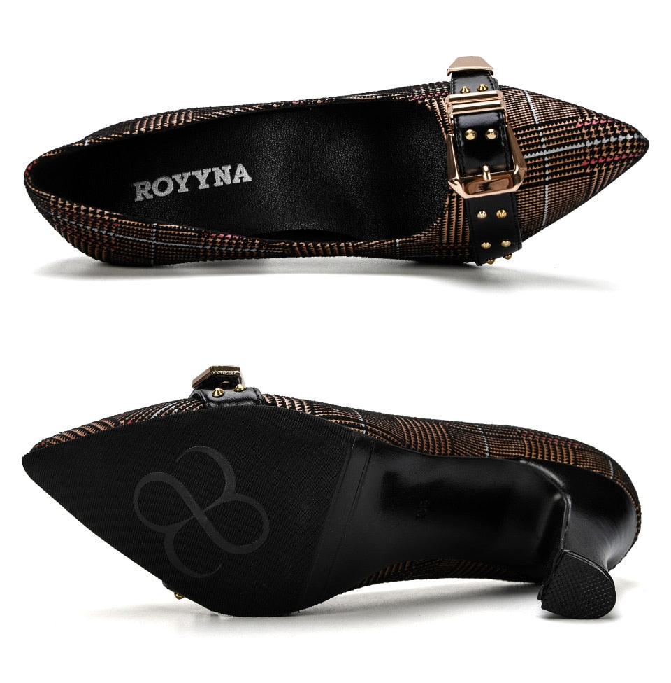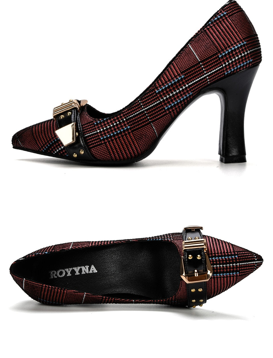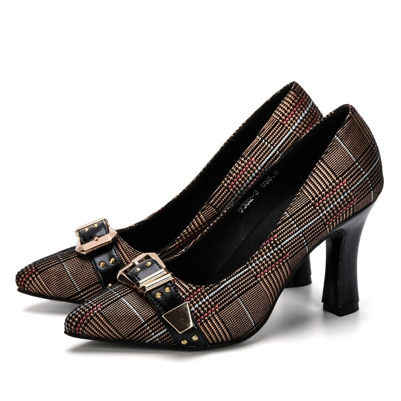 These pumps are perfect for any day of the week, whether you're going for a casual look or a more dressy one. The pumps are made of a quality material that will keep your feet comfortable throughout the day. The full plaid pattern also gives off a classic vibe that keeps you in an everlasting style.