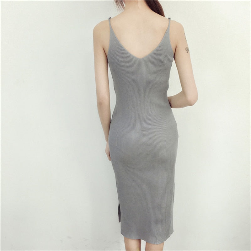 Casual Daily Midi Dress with V-Neckline and Cotton Polyester Material