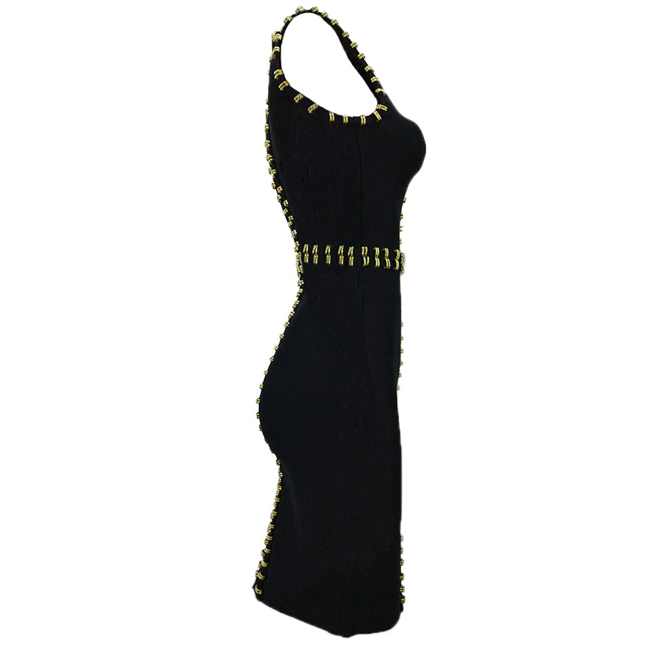 Sleeveless Bandage Front Split Elegant Knee Length Bodycon Dress