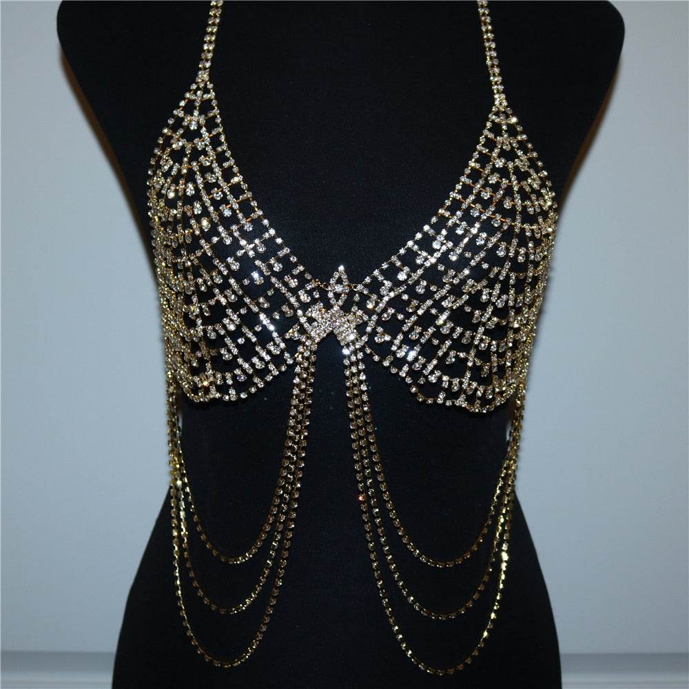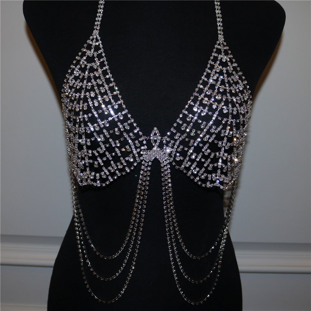 This unique piece of body jewelry is sure to stand out in any outfit. It is available in silver or gold color. This body jewelry is made from copper material and it has full rhinestones.