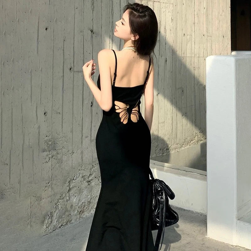 This stunning maxi dress will fill you with love and confidence! Its figure-hugging silhouette accentuates your curves, while the elegant butterfly-shaped cut-out on the back adds a touch of whimsy. Perfect for a night out or special occasion, its polyester and spandex material will keep you comfortable all evening long.