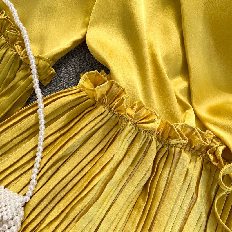 This is a chiffon blouse with ruffles at the bottom. The color options are many and the blouse is very soft.