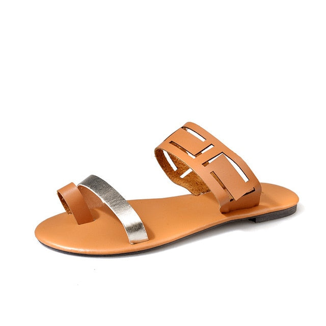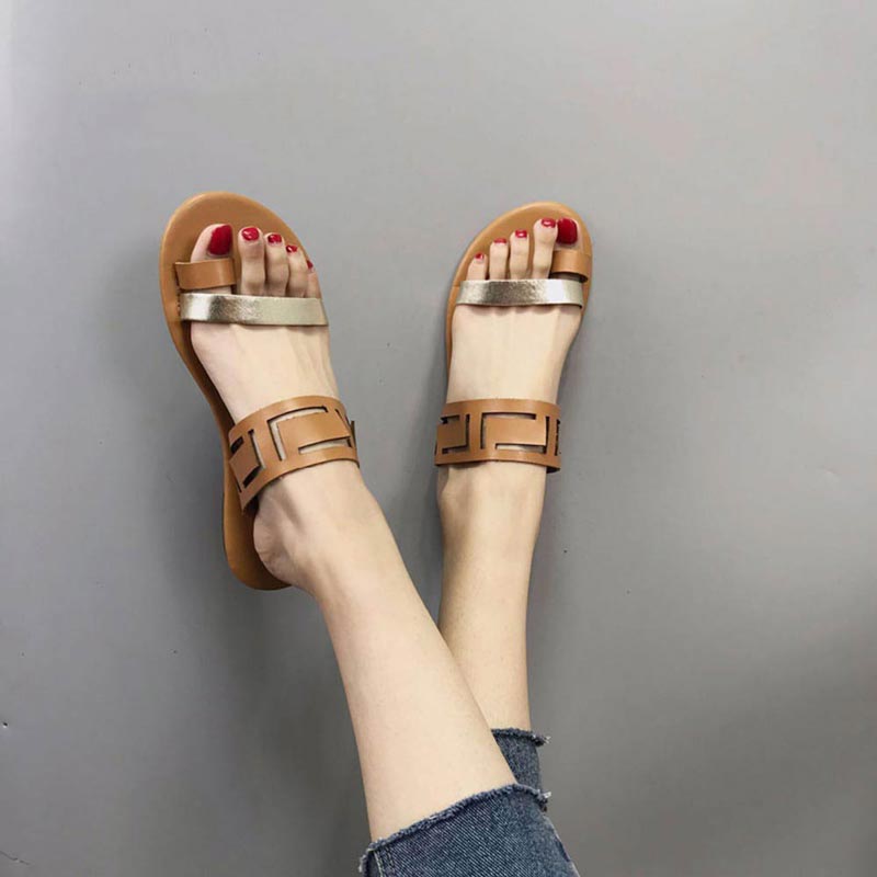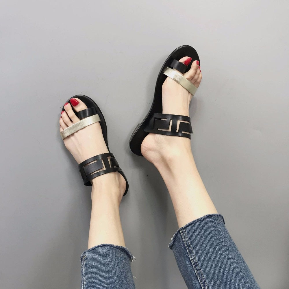 PU Leather Solid Patterned Flat Sandal