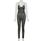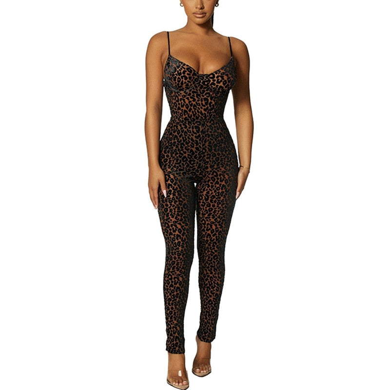 Highlight the key details of this jumpsuit for women. This style is perfect for casual weekends and for a night out. The leopard print fabric looks great with the spaghetti-strap style. Pair it with your favorite heels and accessories for a look that's perfect for any occasion.