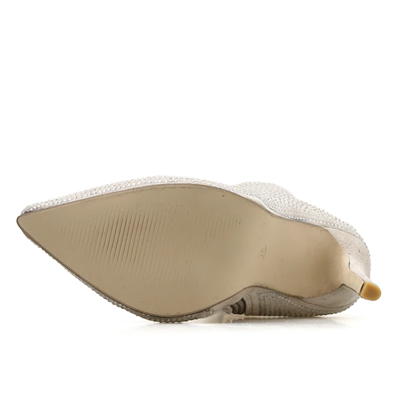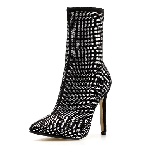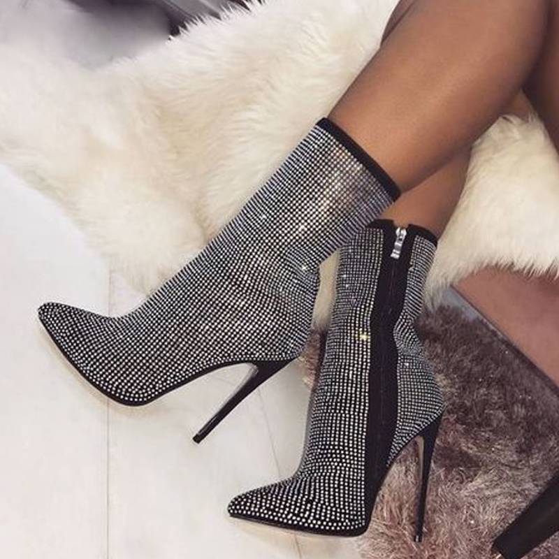 Flock Pointed Toe Rhinestone with Zipper Ankle Boots
