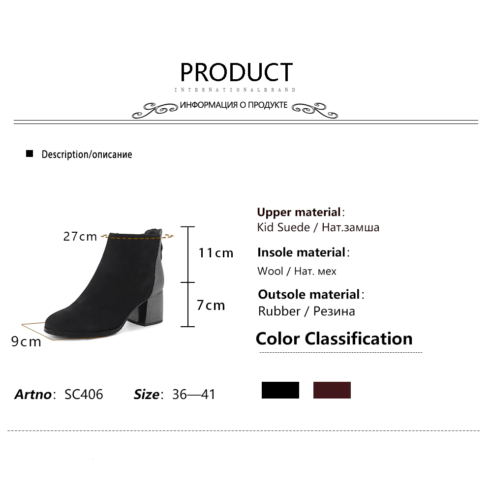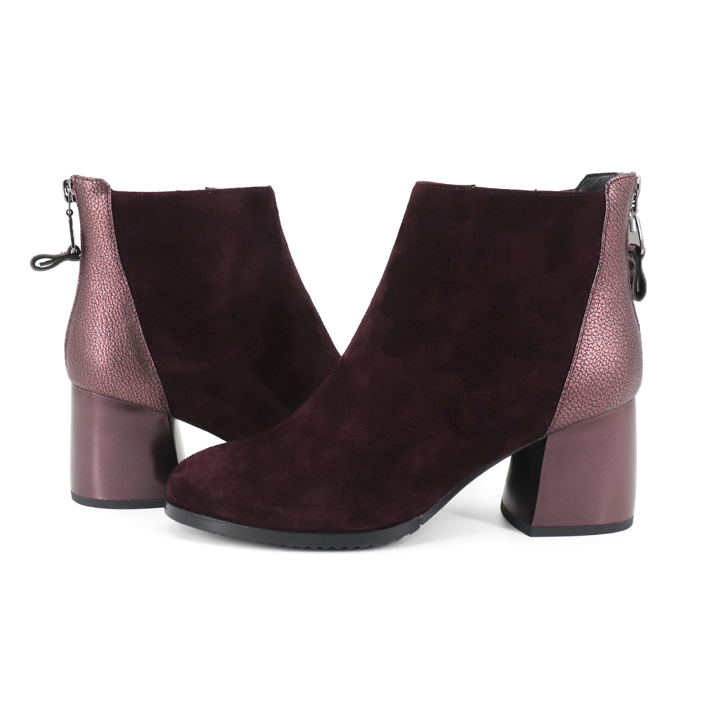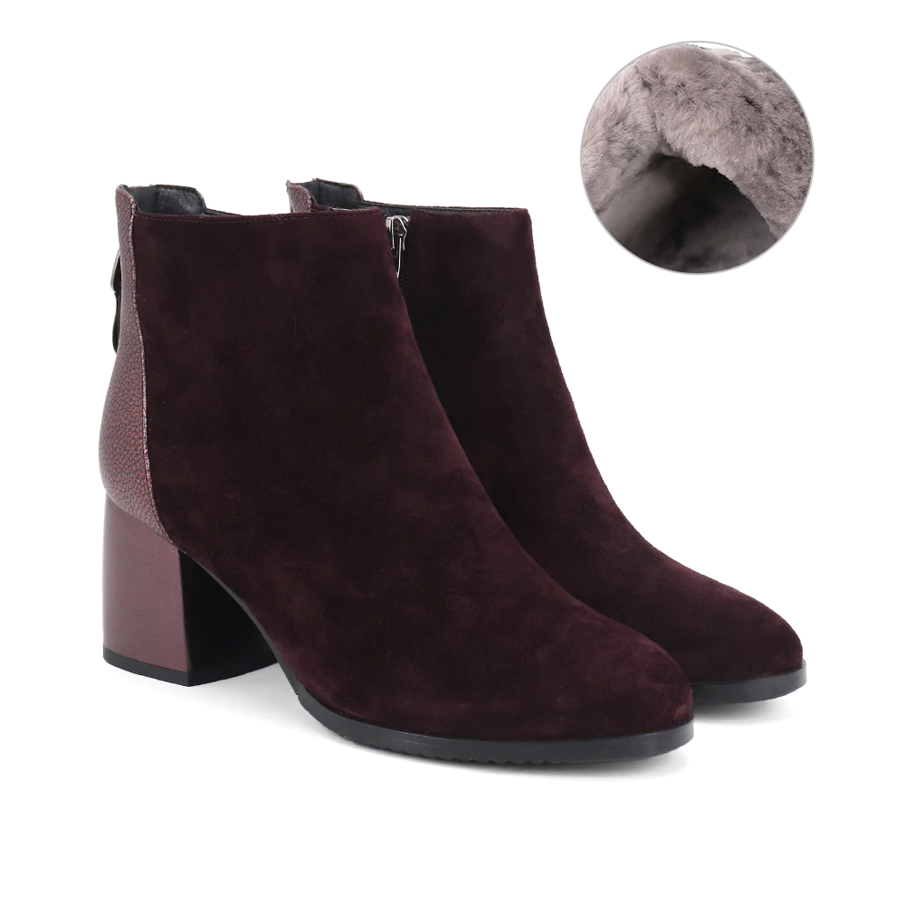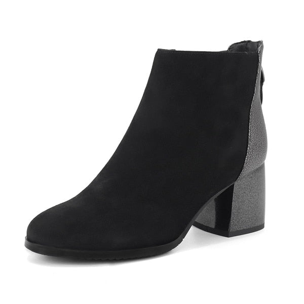 Handmade Suede Mixed Wol Square Heels Women Ankle Boot