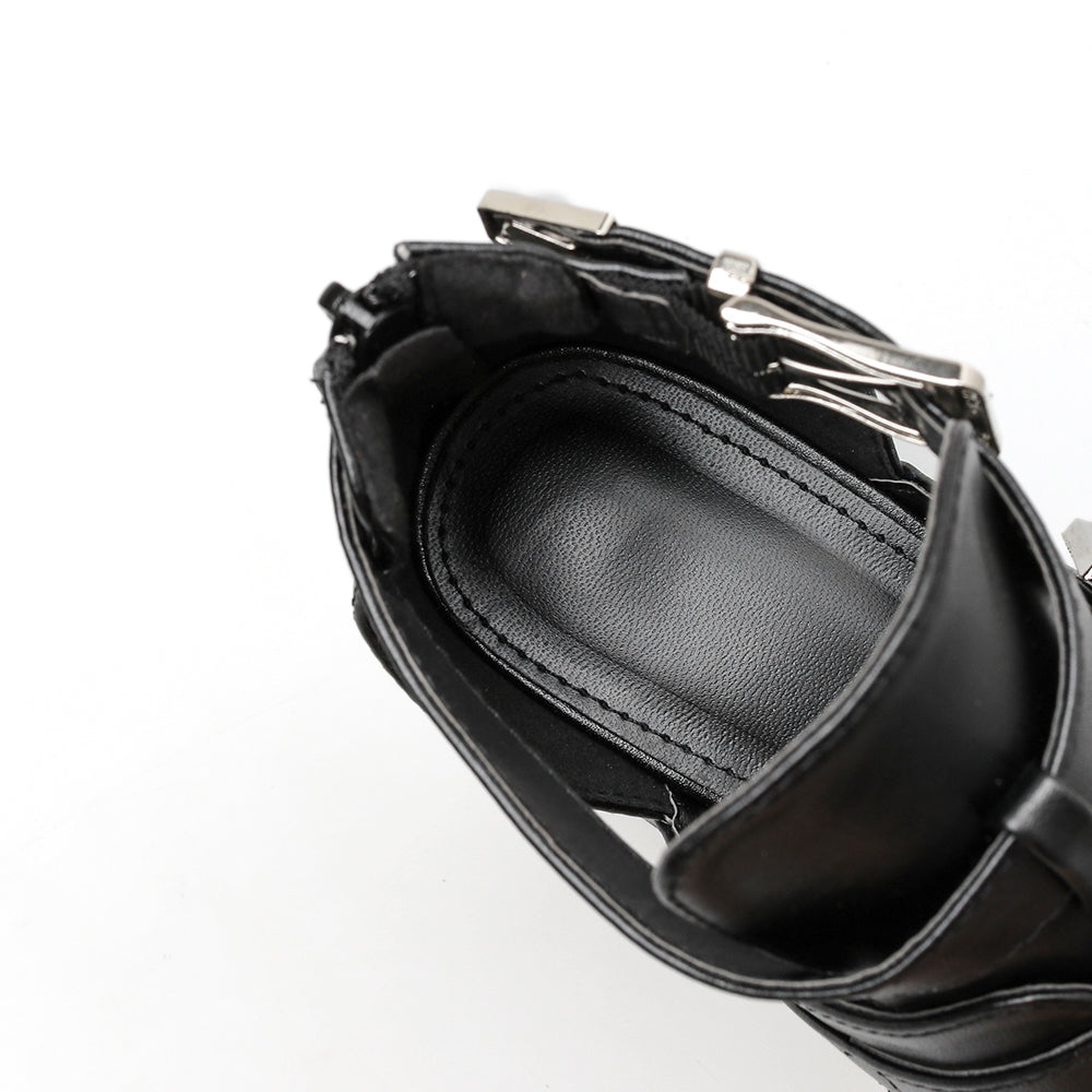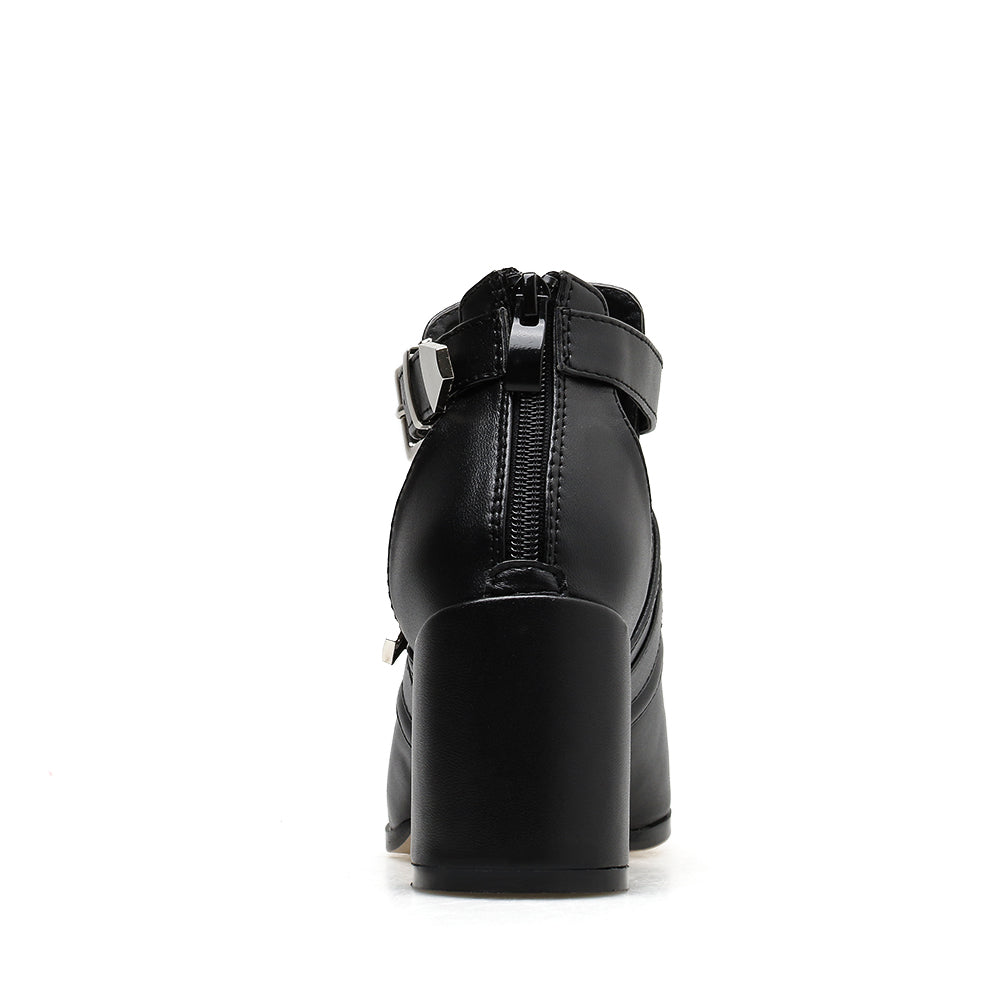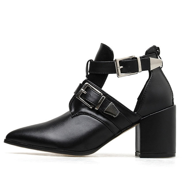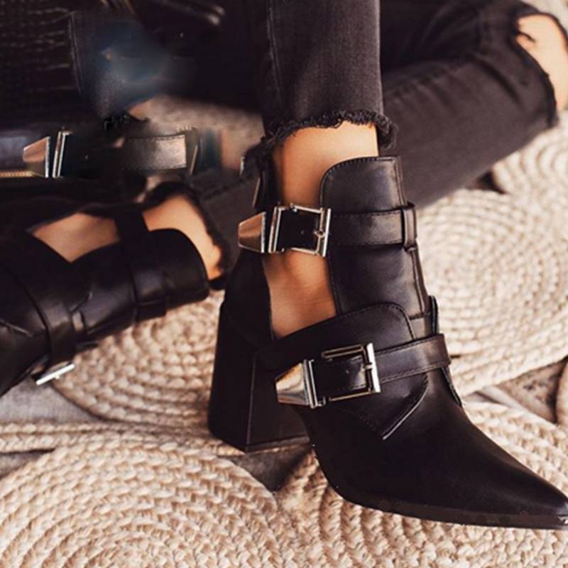 Pointed Toe Metal Buckle PU Leather Ankle Boots