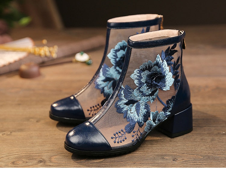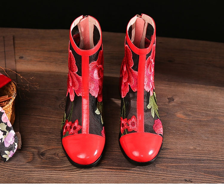 Spring Red Stud Embroidered Pointed Toe  Women Flat Shoes