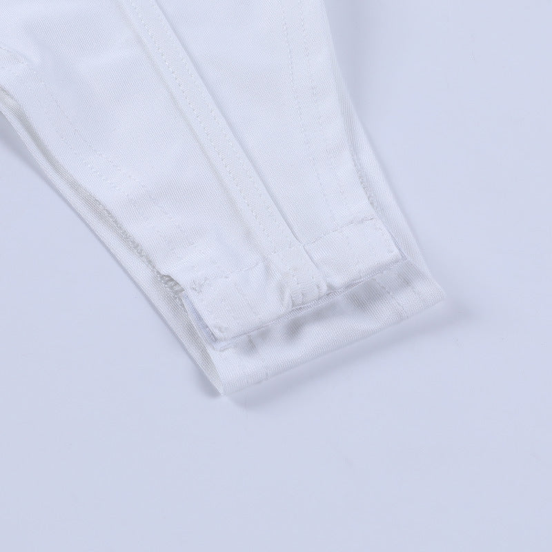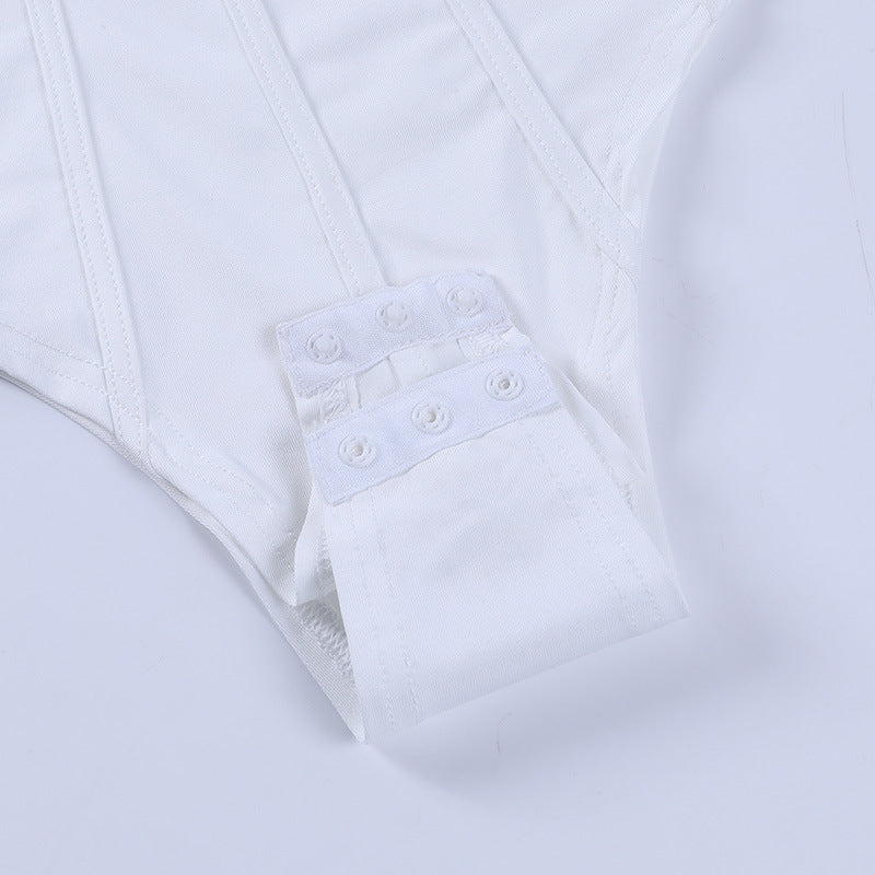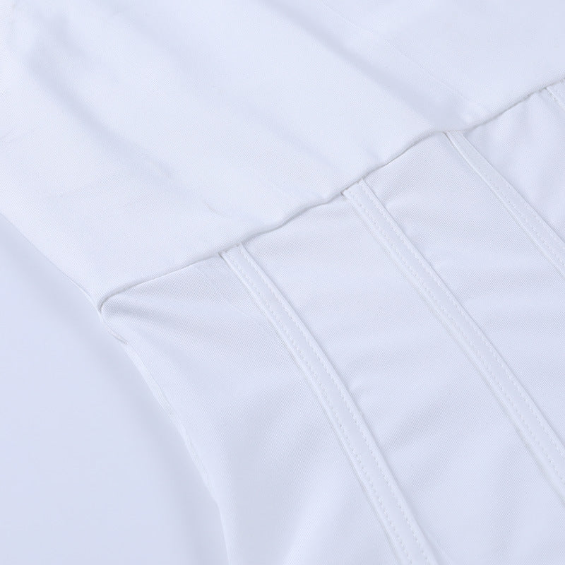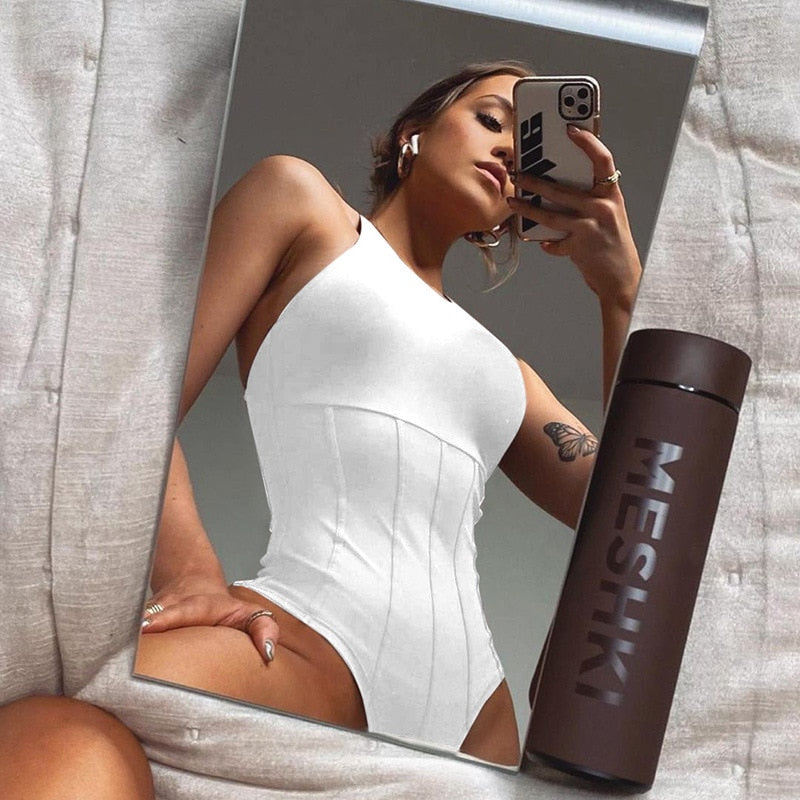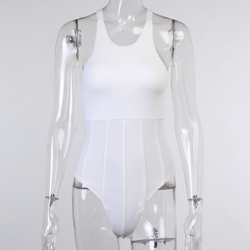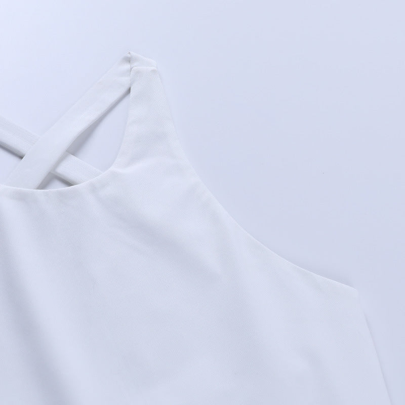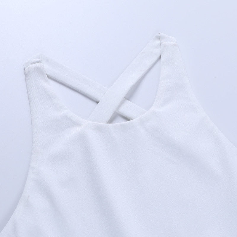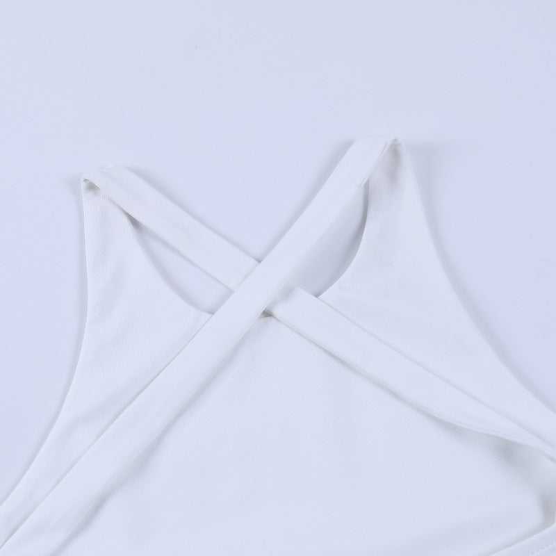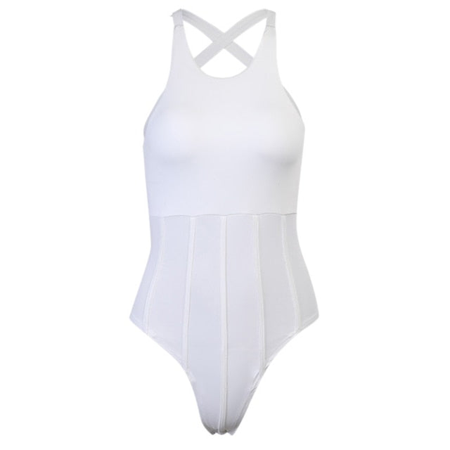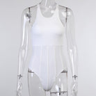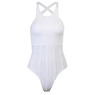 Sleeveless Solid White Polyester Bodysuit with Cross Back Strap
