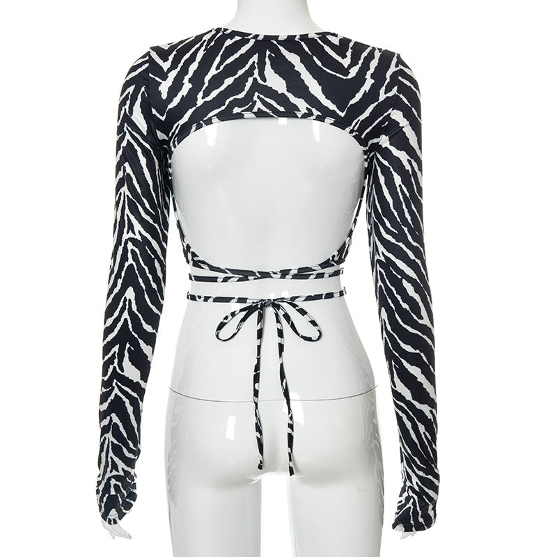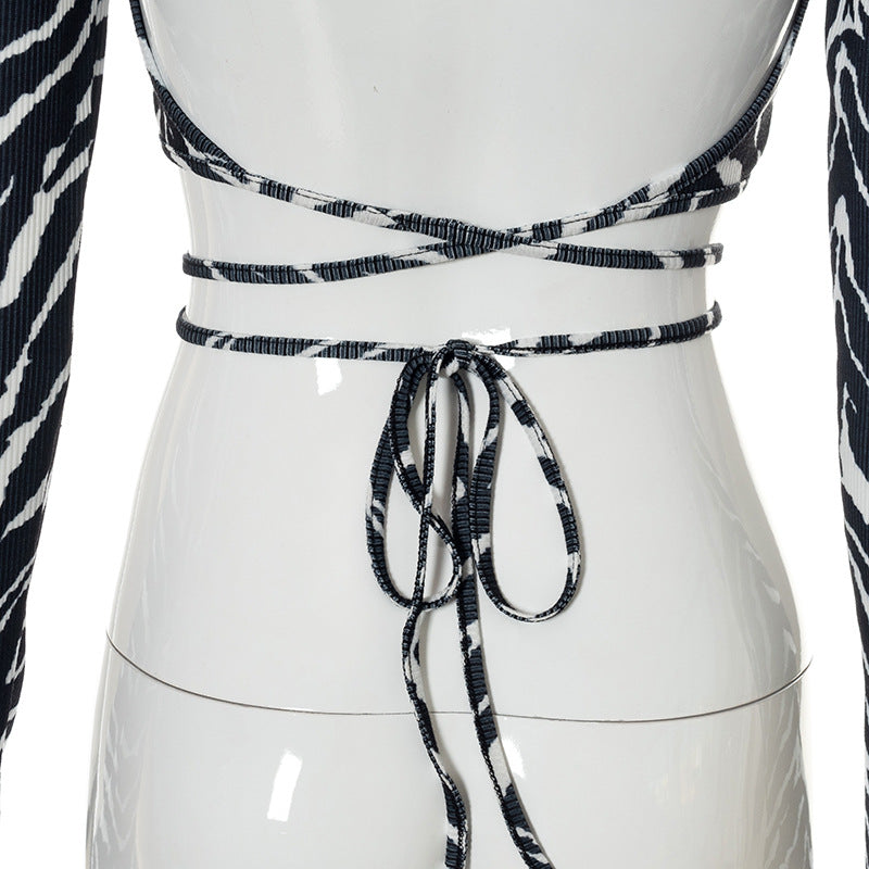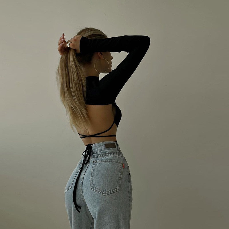 Take a look at this fun and stylish backless crop top. Designed with adjustable straps and a long sleeve, it's a versatile piece that can be worn in a variety of ways. This crop top can also be paired with any bottom for a complete look. The soft, airy fabric ensures she stays cool and comfortable.